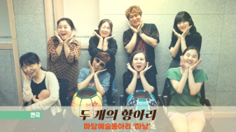 제 10회 시민창작예술축제 학산마당극놀래 - '동행 그리고 공감' 작품명 |두 개의 항아리 장 르|연극 참여팀 |'마냥' 마당예술동아리 동아리소개|인천시각장애인복지관과 연계하여 시각장애인으로 구성된 동아리. 자전적 이야기와 장애인식 개선 등 사회적 메시지를 담은 창작 작품으로 많은 공감과 호응을 받고 있다. 출연진 |김월랑, 박신영, 김광열, 박은실, 이금희, 이혜란, 임순자 연계단체|예술공작소 웃다짓다 (강사 오지나) 작품소개|육아는 어렵다. 시각장애인 순진에게 육아는 더더더욱 어렵다. 장애인, 비장애인이 모두 공감할 수밖에 없는 순진의 육아 투쟁기