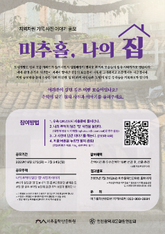 미추홀학산문화원은 2023 특성화사업 기록물 수집 공모전의 일환으로 미추홀 일대의 추억이 담긴 집의 사진과 이야기를 수집하기 위해 홍보이미지를 제작하여 게재하였다. - 기간: 2023.6.27.(화)~7.24.(월) - 부문: 나의 추억이 담긴 '집' 사진과 이야기 - 발표: 2023.7.28.(금) 미추홀학산문화원 홈페이지 • 관리 파일(비공개) 1. 인스타그램 홍보이미지 2부 2. 인쇄용 홍보이미지 1부