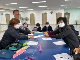2022 학나래두드림 마당예술동아리 수업 및 활동 평가회의 사진이다.  -난타 : 학나래 동아리 -마칭 : 두드림 동아리 -작품명 : 학익에서 바다로2(난타극) -장   르 : 난타극  -소   개 : 문학산의 정기와 학익천의 물줄기를 따라 바다로 이어지는 학익동의 미래로, 바다로, 다함께 힘차게 뻗어 나가는 학익동 이야기 난타 -강  사 : 반승환 -출  연 : 이재혁, 김태순, 권은숙, 김미정, 민경자, 오미란, 이정금, 임정숙, 김복자, 이복희, 위수경, 정지선, 조성미, 홍덕순 • 촬영장소 : 학익1동 주민센터 • 촬영일시 : 2022년 10월 25일 • 사진크기 : 1440x1081 • 사진장수 : 7장