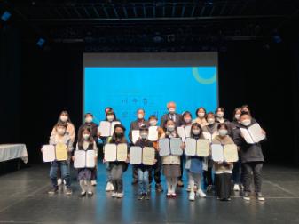 2021년에 진행한 제2회 학산백일장이 총 130개의 작품이 공모되고 그 중 27개 작품을 선정하여 시상식을 진행했다. 코로나 거리두기로 인해 동반 1인까지만 참석하도록 안내했으며, 총 21명이 참석했다. 시상은 초등부 청소년부 일반부 순서로 상장을 전달했다. • 촬영자 : 미추홀학산문화원 • 촬영일자 : 2021년 10월 30일 • 촬영장소 : 학산소극장(미추홀구 용현동) • 사진장수 : 5장 • 사진크기 : 1440x1081 • 주요인물 : 제2회 학산백일장 수상자 • 관련 파일(비공개) 1) 시상식 시나리오