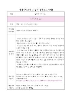 인하대학교 프런티어학부대학 세계시민성교육의 일환으로, 생태계 지킴조에서 11주차에 활동한 내용을 정리한 보고서이다. 11주차 활동 결과  팀원들과 갯벌-철색서식지로서의 중요성이라는 주제로 활동 보고서를 제출하기 위해 줌으로 회의를 했다. 회의를 통해 우리 팀의 문제 해결 아이디어를 갯벌을 지키는 캠페인을 개최하기로 결정했다. 캠페인 개최의 실행 방법과 전략을 구체적으로 하기 위해서 많은 자료를 찾아봤다. 먼저 우리 팀은 갯벌의 중요성을 알리고 갯벌이 현재 처한 상황을 알리는 영상을 제작한 후 SNS에 업로드 하기로 했다. 그 영상의 마지막 부분에 후원하는 방법을 기재하여 후원금을 모은다. 모은 후원금을 바탕으로 철새 사진 대회를 개최하고 우승 작품을 선정하여 소정의 상품을 주어 많은 사람들의 참여를 유도한다. 이후 학교 측과 협업하여 선발된 대회 사진들을 바탕으로 주민들을 대상으로 하는 무료 전시회를 열어 많은 사람들이 철새와 갯벌에 대해 알고 관심을 갖도록 한다. 또한 전시회에서도 우리 캠페인의 활동을 알리고 모금함을 설치하여 후원금을 받는다. 전시회 앞에서도 전시된 사진으로 만든 엽서나 포토 카드 등을 판매하여 이후 봉사에 쓰일 돈을 마련한다. 여태까지 모은 후원금과 포토카드나 엽서를 통해 모은 돈을 합쳐서 약 40만원 가량의 봉사용 플로깅 키트를 구매 한 후 사람들을 모집하여 갯벌 현장 실습을 시행하고 자원 봉사자들을 모집하여 갯벌을 청소하는 캠페인을 시행한다. 우리의 이런 계획을 홍보하기 위해 학교 캠퍼스 내에 1.5만원 정도의 비용을 들여서 현수막을 설치하고 SNS에 챌린지 형식으로 홍보를 하기로 했다. 우리 팀이 참고한 SNS 홍보 챌린지는 갯벌 방위대 챌린지이다.    • 문서쪽수: 2쪽 • 문서크기: 486KB • 관리파일(비공개) 1) 보고서 기술지 2) 기록물 활용 동의서