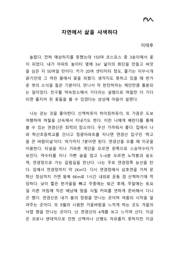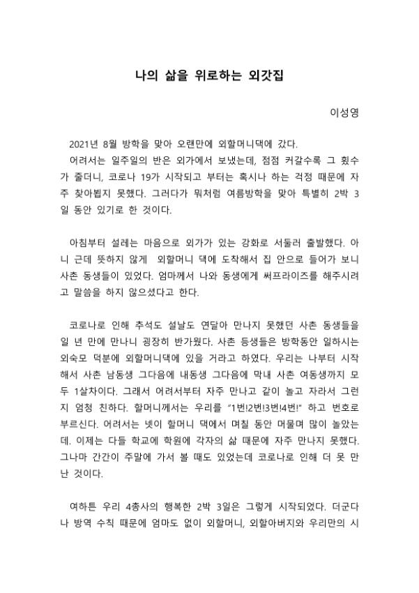 *제2회 학산백일장의 작품은 아래의 기록물을 통해 자세히 관람할 수 있습니다.