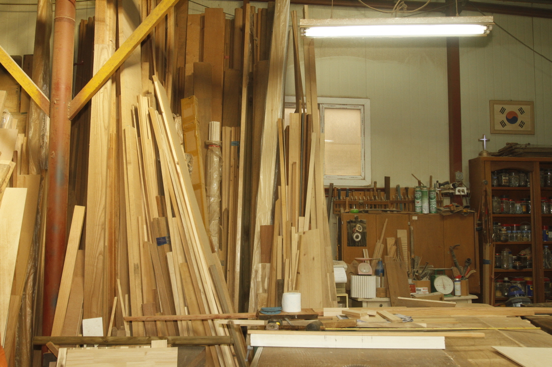 그건 노아라는 그분이 인류에 처음으로 목제 제품을 만든 거야. 그 배가 어떤 배였냐면 온 인류가 구원받은 배야. 거기에 들어가는 건 다 살았어. 그 40일 동안 그렇게 비가 내리고 온 세계가 물에 잠겼었는데 그 속에 들어갔던 모든 사람 또 짐승이 모두 다 살았어. 하나도 안 다치고 배도 안 망가졌어. 그렇게 튼튼한 물건을 내가 만들겠다는 그런 개념으로 노아목재라고 지었지. 튼튼한 물건 꼭 필요한 물건, 우리 집은 개업할 때부터 원목 콘셉트로 오픈했죠. 우리 집에는 PB 같은 게 없잖아요. 손님들이 와서 해 달라고 하면 내가 끊어주기는 하는데 그걸로 직접 만들지는 않아요.