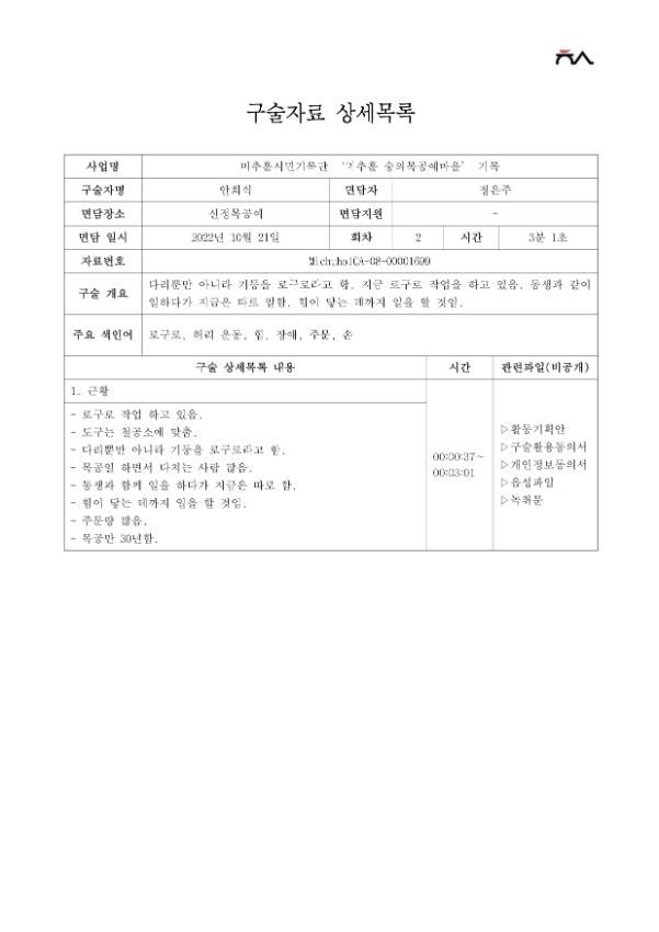 오래 했지. 삼십 년. 일을 하다 보면 아까도 말했지만, 많이 다쳐. 손도 많이 다쳤는데 오른손보다 왼손을 많이 다치는데 이상하게 이렇게 되더라고요.