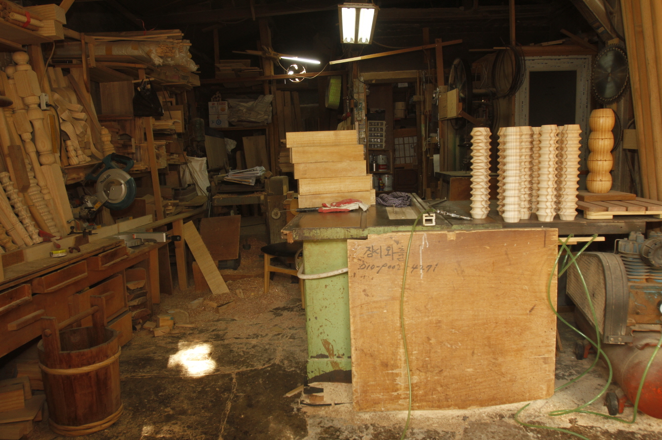 16살에 올라와서 안 해본 거 없죠. 내가 장남이니까. 한 일곱 가지 일을 해봤어요. 책가방, 깡통으로 양철로 만든 호롱 등불 등잔 그런 거 별거 다 해봤지. 옛날에 뭐 오줌통 물통 같은 거 있잖아. 그걸로 시작해가지고 저기 보이잖아요. 어디 하나 있는 거. 저기 있잖아. 옛날 그런 것도 만들고 술통 큰 것도 만들고 안 해본 거 없다니까.
