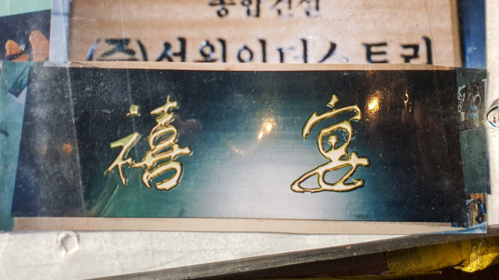 나왕이 가장 무난하죠. 최근 들어 나왕은 수입이 안 돼요. 그린피스 환경 단체들이 산림 훼손도 막고 있고, 거기다가 방대한 중국이 산업화 되면서 동남아시아 원목들이 통째로 중국으로 가요. 그래서 우리나라에는 나머지 자투리들만 받아오다 보니까 제대로 공급이 안 돼요. 그래서 나왕 대치품인 집성목을 사용해요. 작업은 아주 힘들어요. 집성은 여러 조각을 붙여서 빗물에 오래 받으면 이게 퍼질 염려가 있잖아요. 그러니까 이건 우리가 작업 과정이 더더욱 힘든 게 앞뒤로 칠로 포장을 다 해줘야 되요. 집성목을 보면 중간에 이렇게 클립해 놓은 건 사용을 잘 안 해요. 집성 목재 중 솔리드라는 것을 사용해요. 그냥 나뭇결을 갖다 붙여놓은 거예요. 그래서 서각할 때에는 이게 별로 안 좋아요. 칼이 잘 안 맞아요. 이건 엊그저께 인천시장 당선자 인수위원회 간판이거든요. 이거 보시면은 솔리드라 해서 안에 여러 겹이 붙어 있는 거죠. 요게 집성목입니다. 집성이라는 말 그대로 나뭇조각을 갖다 이렇게 집합을 시켜서 본드로 붙여놓은 거잖아요. 요즘은 이 접합시키는 본드도 좋고 기술도 좋아가지고 떨어질 염려는 없어요.