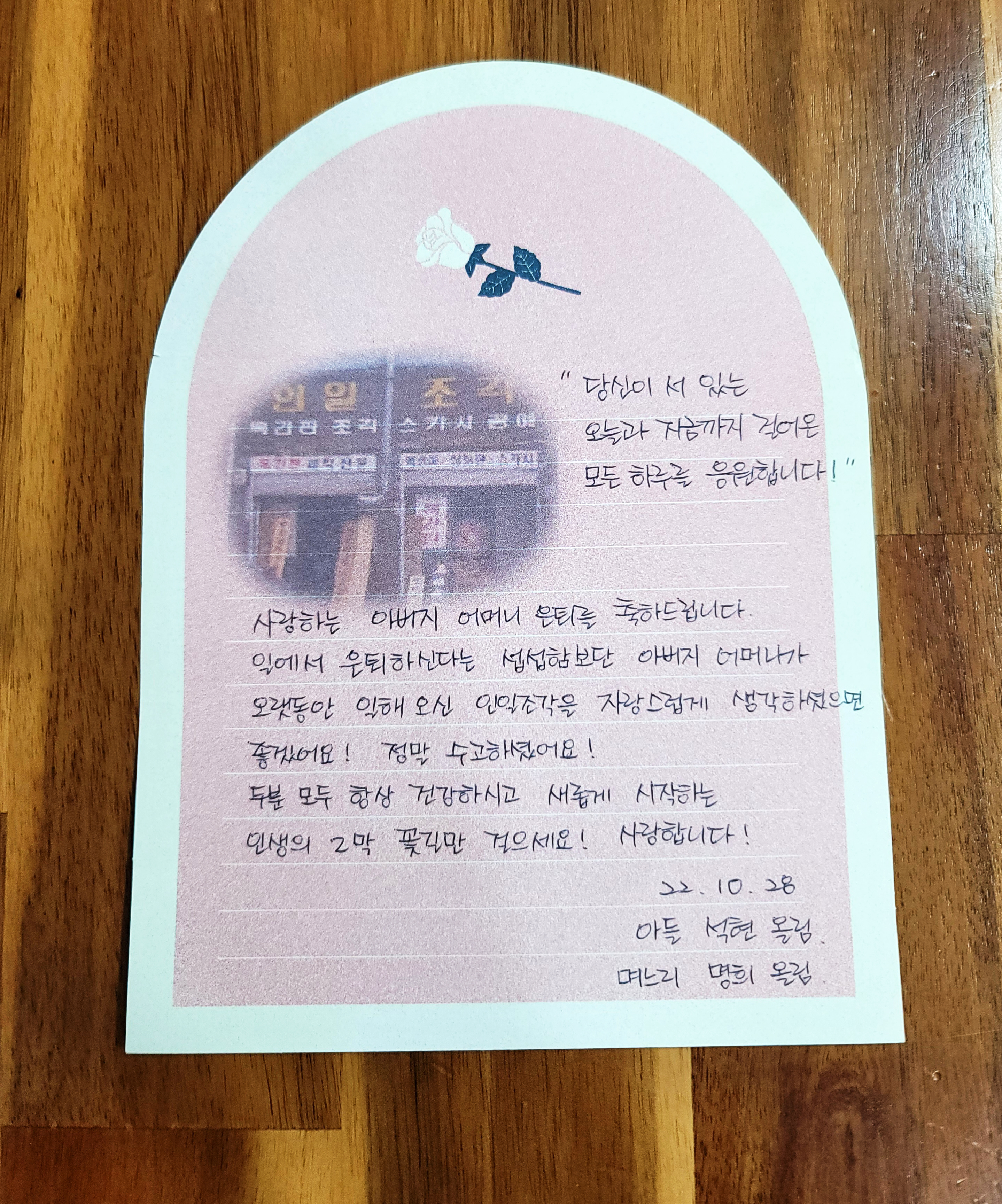은퇴하신 기념으로 아들 며느리가 쓴 손편지