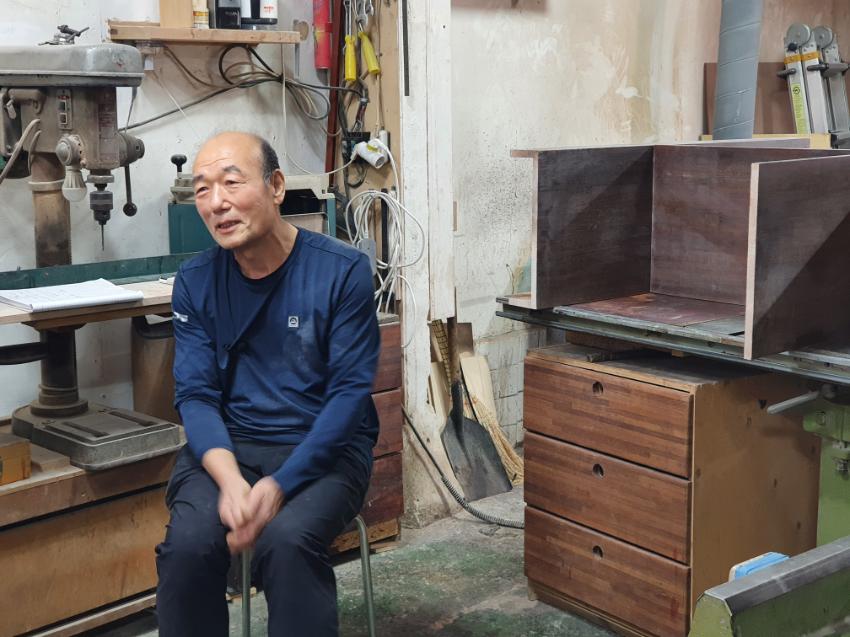 나무가 좋아서 일을 하고 있음. 점점 거리가 줄어드는 것이 아쉬움. 목공예 거리가 항상 썰렁함. 안전 교육이나 수업을 할 수 있으므로 목공에 관심 있는 사람들이 목공을 배우고, 창업까지 할 수 있도록 하면 좋겠음.