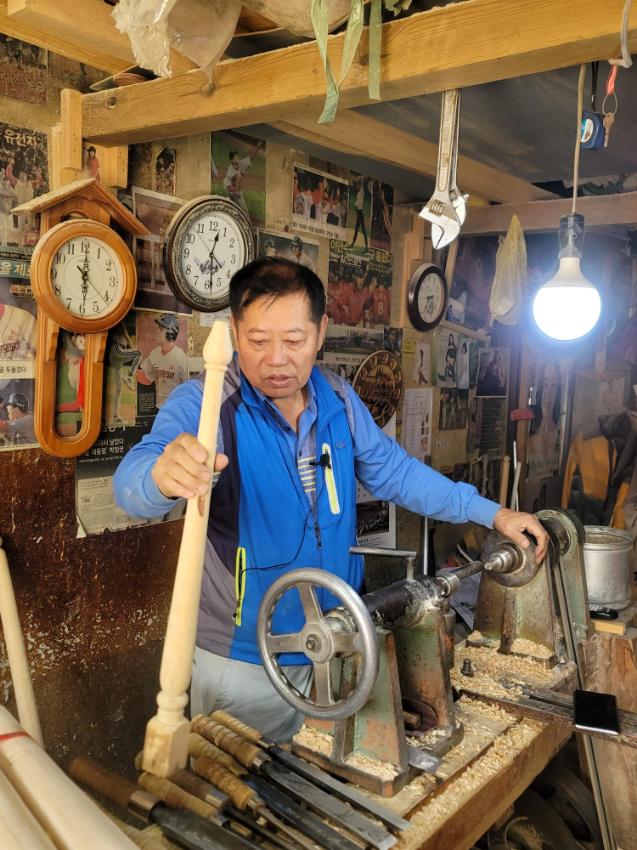 인천 영종도에서 태어남, 큰아버지 사돈이 공예일을 하는 데를 따라갔다가 신기해서 배우게 되었음, 79년도에 대우공예사를 시작, 요즘은 야구방망이, 지압봉, 가구다리 등을 만듬, 처음 배운 게 로구로였으며 지금까지 하고 있음, 옛날엔 잘 되었지만 지금은 그렇지 않음, 젊은 사람들이 많이 와서 기술을 배우고 활성화 됬으면 좋겠음.
