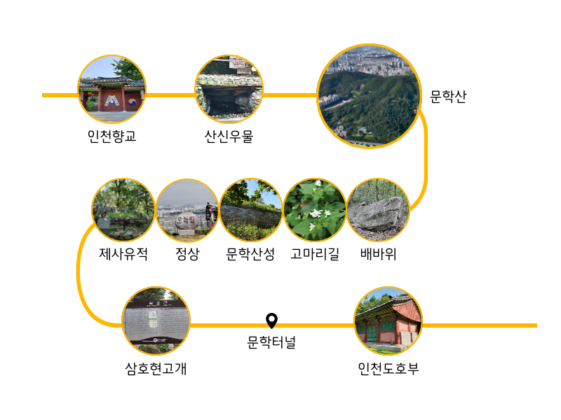 인천의 진산인 '문학산'은 건국 설화를 품고 있으며 비류백제의 도읍지로 역사를 깊이 가지고 있다. 또한, 교육기관인 인천향교와 행정기관인 인천도호부가 있다는 것은 이 지역이 인천에서 중추적인 역할을 담당했음을 알 수 있다. 따라서, 옛 인천의 중심지인 문학산 일대를 걸어보며 바다로 진출하던 선인들의 기상을 느껴보기 좋은 코스이다.