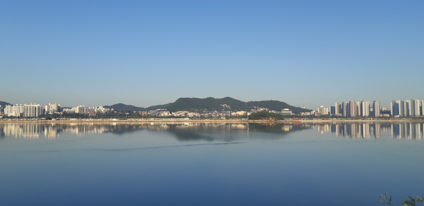 • 인천대교로 연결되는 다리 밑에서 청량산을 배경으로