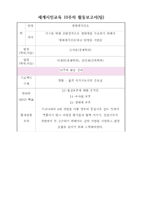 - 발표조 : 생태계 지킴 조 (금서윤, 마재연, 심민재)