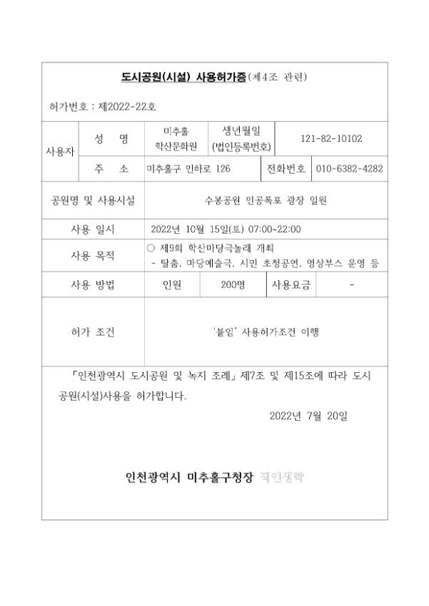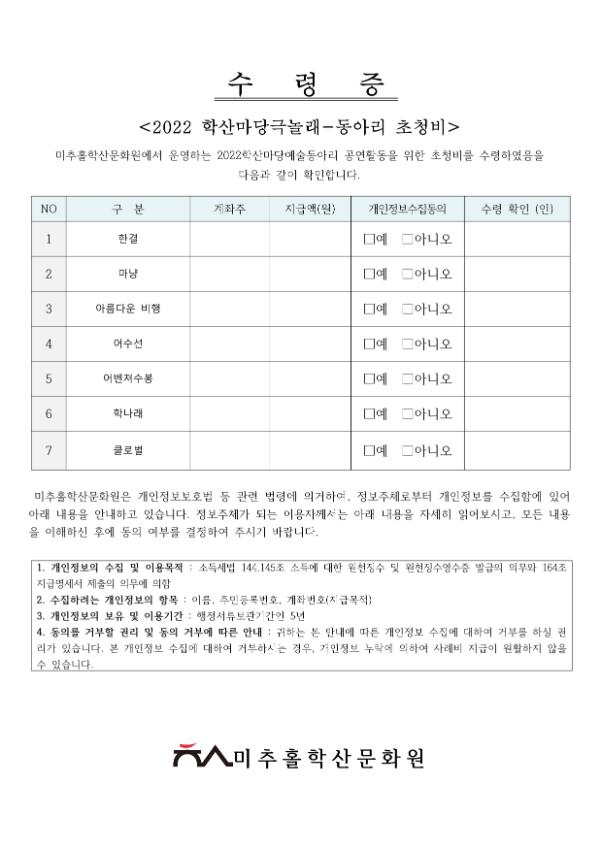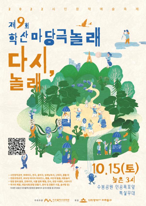 미추홀 주민들의 주체적이고 자발적인 참여로 만들어지는 '마당예술'이 해마다 새로운 시도와 변화를 모색하는 시민창작예술축제가 되도록 노력하겠습니다.