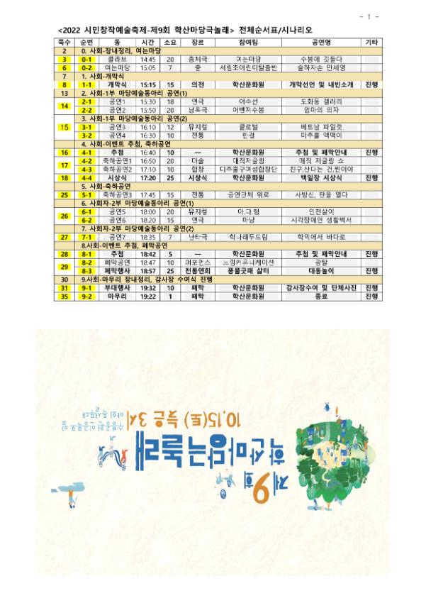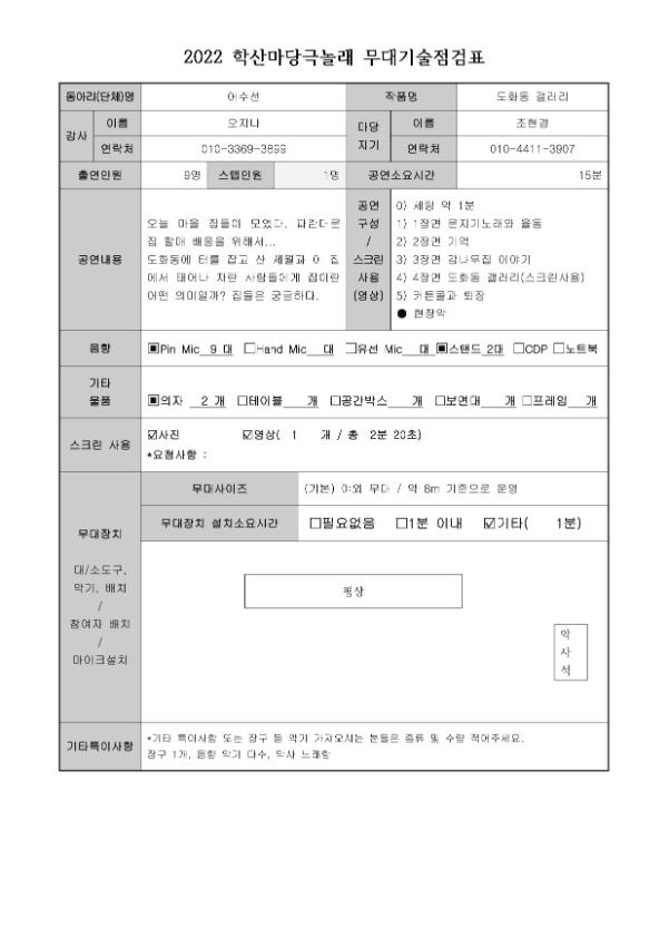 여는 마당 14:45 ~ 15:30 공연 마당 15:10 ~ 18:30
