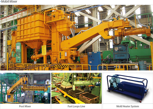 이때는 주강 공장들이 CO2 공법으로 작업을 하고 있었거든요. CO2 프로세스라고 물유리를 갖고서 하는 공법인데 그 일이 상당히 손도 많이 가고, 일손도 많이 가고, 제품도 아주 지저분하게 나올 때 알파세트라고 하는 공법이 새로 나오기 시작했어요. 알파세트가 뭐냐 하면 주방에서 물건을 경화를 시키는데 알칼리 페놀 수질을 갖다 써서 몰드를 뜨거든요. 모래에다가 수지를 섞으면 딱딱하게 시멘트같이 굳어지는데 CO2는 물유리에다가 CO2 가스를 집어넣으면 굳어져요. 작업성이 좀 좋아져서 이 기술을 일본 업체하고 협정을 맺었죠. 예전에는 우리나라에서 거의 다 만들지 못하고 일본이나 독일, 영국이나 이런 데서 이 기계를 수입했거든요. 그러다가 점점 기술력이 성장하면서 우리나라만 하기에는(공급하기에는) 시장 규모가 작으니까 일본에도 이제 팔 생각하고 카탈로그까지도 만들어놨죠.