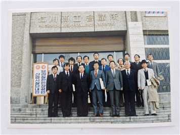 저는 고향이 충청도예요. 충청도에서 아무 연고가 없는 인천에 오게 된 것은 형님이 부평에 살고 있었는데 그때 향동기업 주식회사를 창업하는 단계였습니다. 군대 제대하자마자 그 기업을 일으키기 위해서 인천에 왔죠. 그 회사 명칭은 향동기업 주식회사로 하는 일은 sp라고 해서 세크리터리 폴리스 경비 용역업체. 경비 용역을 따내는 과정에서 기존 업체와 경합이 붙었어요. 입찰에서 우리가 탈락해가지고 형은 바로 미국으로 이민을 떠나고 나는 그때 특채로 인천상공회의소에 들어갔죠. 거기서 하는 일이 조사 업무였어요. 감정 업무, 물가 조사 업무라든지 이런 업무를 했습니다. 그게 69년도 3월입니다. 그러고 나서 아마 1년 채 안 돼서 무슨 일 때문에 내가 사표를 내니까 그때 권혁환 사무국장이신 이 어른이 인천 초대 시의회 의장을 지내신 분이었어요. 아주 고명하신 분인데 이분이 좀 더 있어 보면 좋은 일 있을 거라고 국장님의 만류로 그냥 눌러앉아서 계속 근무를 했습니다.