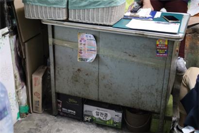 가끔 와요. 그럼 나 음료수 하나 얼른 줘. 아주 너무 반가워서 그거 다 몇 년 전에는 이 사람들이 이제 모임을 했나 봐. 이분들이 이제 돌아가실 때가 됐어. 그러니까 전부 다…… 근데 저쪽에 가서 막 쭉 서 있어. 내가 저녁때 아저씨가 가게를 보니까. 내가 오후에는 좀 운동을 한 번 했고 그렇게 했어. 그러다 보니까 아니 남의 집이 좋지도 않은 집을 어떤 놈들이 쫙 쳐다보고 있는 거야. 아주 좋지도 않은 집을 누가 저렇게 쳐다보고 있나? 그랬더니 세상에 우아미가구에서 그 전부 직장 생활하던 사람들이 내 옆치기도 잘했어. 여기다가 소주를 넣어주면 감추기 잘해. 동석하고 그랬고 재밌었어. 그때는 이걸 문제가 아니라 사람이 의리가 있거든. 진짜 그런 시절이 왔으면 좋겠어. 근데 지금은 못 믿어요. 외상 줄 수가 없어. 여기 저쪽 건너가면은 기숙사에 있었잖아요. 이건산업도 그리고 가게가 몇 개 안 됐어. 지금은 뭐 24시도 생기고 뭐도 생기고 했지마는, 그때만 해도 내가 저쪽이 장단점이 하나다. 그러니까 뭐 여기 오지 않으면 살 데가 없거든. 식당이 있나, 뭐 있나. 저 담 있는 데가 다 우리 집 통로야. 여기서부터 저 사람 지나가는 데까지가 하수도야. 지금 우리 집 문 앞에서 저 택배 있는 데까지가 하수도야. 지금 이 밑에 하수도야.다리 놓고! 다리 놓고 건너가서 거기 가서 신문지 한 장 들고 가면 앉아서 드시는 거야. 앉아서 그냥 땅바닥에 두 다리 쭉 뻗고 앉아서 이 근로자들은 이렇게 땅바닥에 앉아서 그냥 지금 그 당시에 박스가 어딨어! 근로자들은 그냥 신문지 하나만 깔고 앉으면 그냥 거기서 술 한잔하고, 두부 그냥 두부 한 판 두 판씩 사놓으면 간장 양념 얼큰하게 해가지고 착착 썰어서 쫙! 뿌려주면 그냥 배고플 때 최고지. 퇴근 후나 야간 주간이 있으니까 퇴근한 사람들은 아침에 먹고 저기하고 이제 저녁에 오시는 분은 이제 늦게까지 이래. 그럼 그 사람들 보내놓고 문 닫고 쉬었었지. 저기서 빨래를 하는 거야. 손빨래 다 해서…… 3명 빨래, 세 명분이야. 할아버지 할머니 그것도 안 바라. 둘이 다 빨면 한 보따리야. 그래갖고 빨래 갖다 놓고 그랬어.
