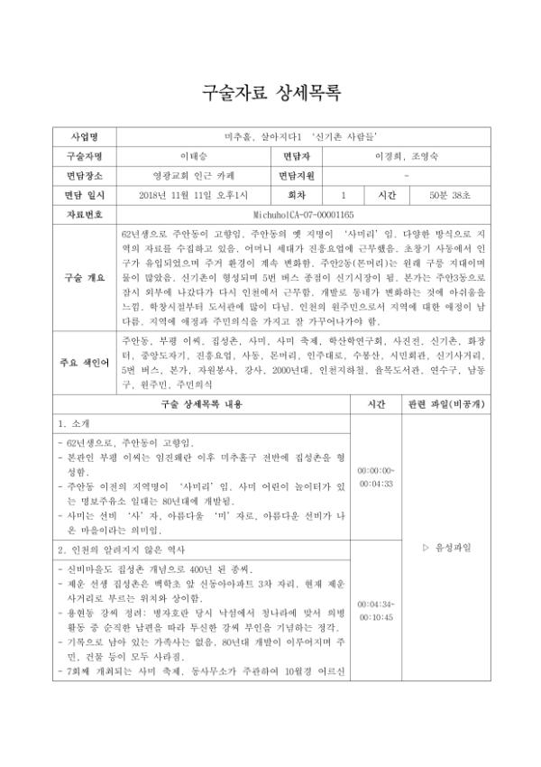 구술자 : 이태승 (사미연구소, 학산학연구소, 주안3동 토박이)
