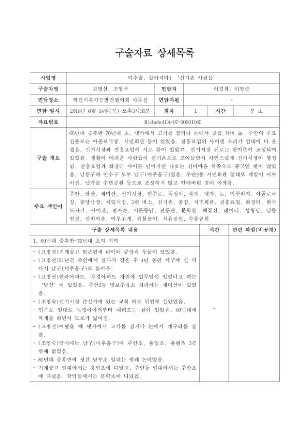 구술자 : 고병선(미추홀구 공무원, 주안2동 출생 및 거주)