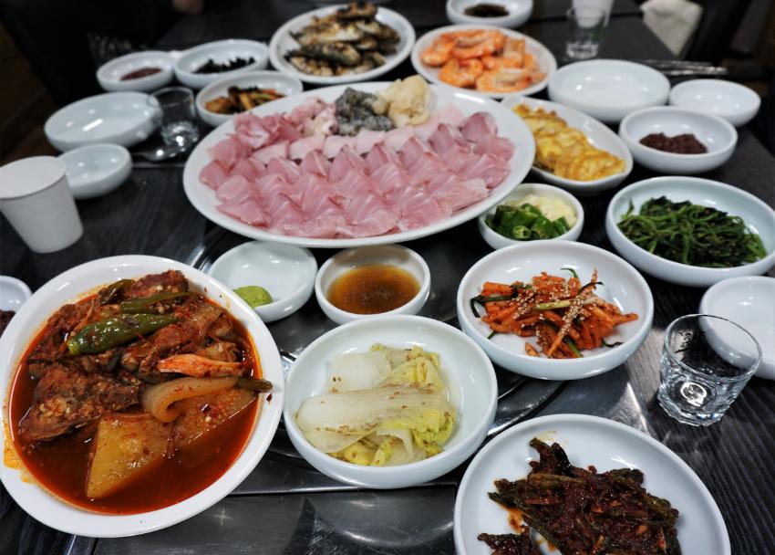여수에서 올라오셨다는 주인 내외가 선보이는 음식은, 기실 따로 배운 것이 아니라 어려서 먹고 자라온 그것이란다. 어려서 바다와 지척으로 살다 보니, 양식 생선보다는 바다에서 갓 잡은 자연산에 입맛이 길들여진 것이요, 결국 입맛에 타협을 보지 않고 차린 것이 ‘선어’를 다루는 가게였던 셈이다. 그러니 손님상에 오를 법한 음식을 내는 것이 아니라, 그 기준이 손녀에게 주어도 무방한 집밥이 되어버린 것이다. 특히 주인은 닭국조차 냄새를 견딜 수 없는 약한 비위의 소유자인지라, 민어탕을 끓여도 조금의 잡내를 허용할 수 없다고 하였다. 시류에 따라 손님의 입맛에 맞추는 것이 아니라, 주인의 입맛이 본위가 된 것이다. 그러니 여느 민어탕과는 달리, 마늘이니 표고 등속 따위로 잡내를 잡은 맑고 깨끗한 민어탕이 상에 오르게 된 것이었다.