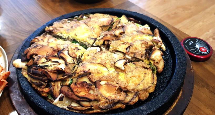 추가로 한 말씀 더 드리고 싶은 거가 저희 식당의 시그니처는 옹심이랑 파전이에요. 버섯 파전인데 그거를 너무 좋아하세요. 표고버섯을 거의 한 70~80% 깔아요. 그거는 웰빙 음식이라 저희가 해물 버섯 파전이라고 하는데 실질적으로는 표고버섯이 엄청 많이 들어가요. 거의 주먹으로 한 두 주먹 정도로, 식감이 풍부하고 맛있어요.