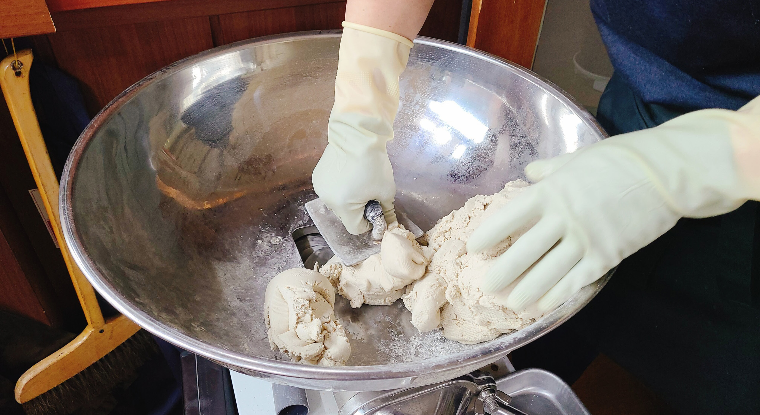 네. 반죽기 하나만 한 8천만 원 정도 했던 것 같아요. 저 반죽기가 내가 실수만 안 하면 왜냐하면 기계는 기계잖아요. 입력시킨 대로 돌아가니까. 그러니까 동생한테 배우면서 저도 메밀은 글루텐이라는 성분이 없기 때문에 찰기가 없는데, 근데 “이거 너 뭐 섞는 거 아니냐?” 그래서 저하고도 말싸움 많이 했는데, 근데 진짜 해 보니까, 그러니까 저 기계를 일본 사람들이 기계를 발전시켜서 메밀 100 %를 가지고 이런 면을 먹을 수 있게끔 해준 거야.