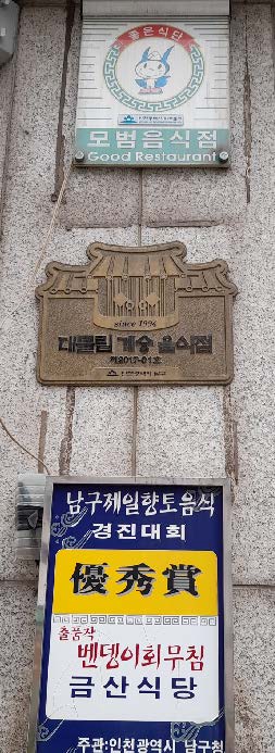 대물림 가게 현판은 밖에 걸려 있고요. 제가 아주 오래전에 미추홀구 음식 경진대회 1회 때 밴댕이무침으로 출전해서 우수상을 받았어요. 경진대회 모든 과정이 굉장히 엄격했고, 힘들었지만 오랜 세월 밴댕이를 만지면서, 뭔가 업적으로 남기고도 싶어서, 도전을 했었죠.