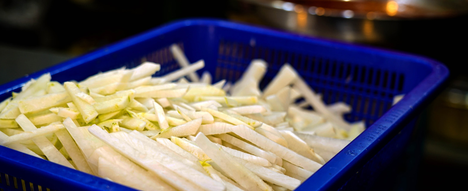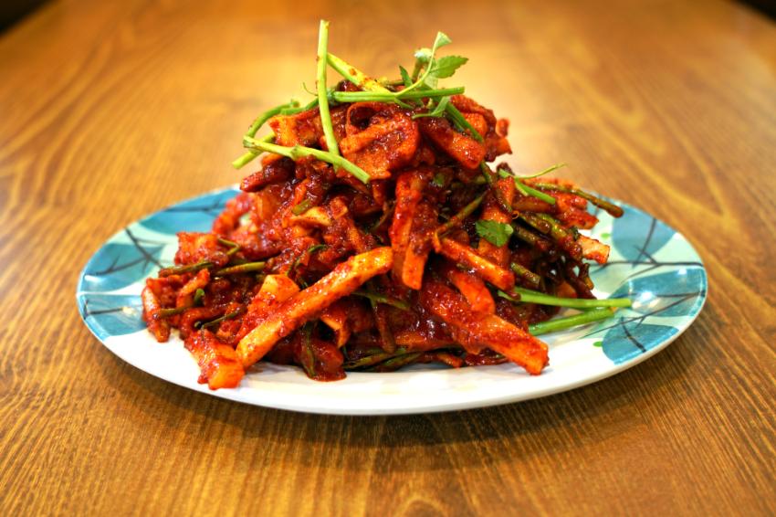 미나리, 무 등이 들어가요.