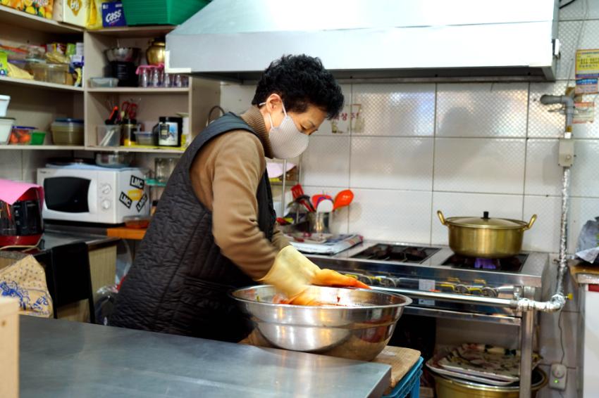 저희는 그래도 이거 잡숫는 분도 많이 계셔서 포장을 많이 해 갑니다. 무침도 포장해 가고, 삭힌 것도 포장해 가고 포장을 좀 하니까 그럭저럭 좀 지내고 있어요.