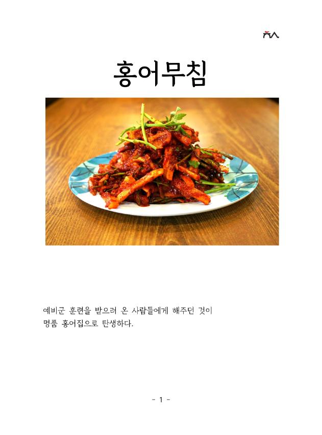 옛날에는 백반집을 하신 거로 아는데요. 백반집을 하다가 예비군 훈련을 받으러 온 사람들에게 반찬으로 홍어무침을 내줬는데 호응이 좋아서 하게 되었다고 들었습니다.