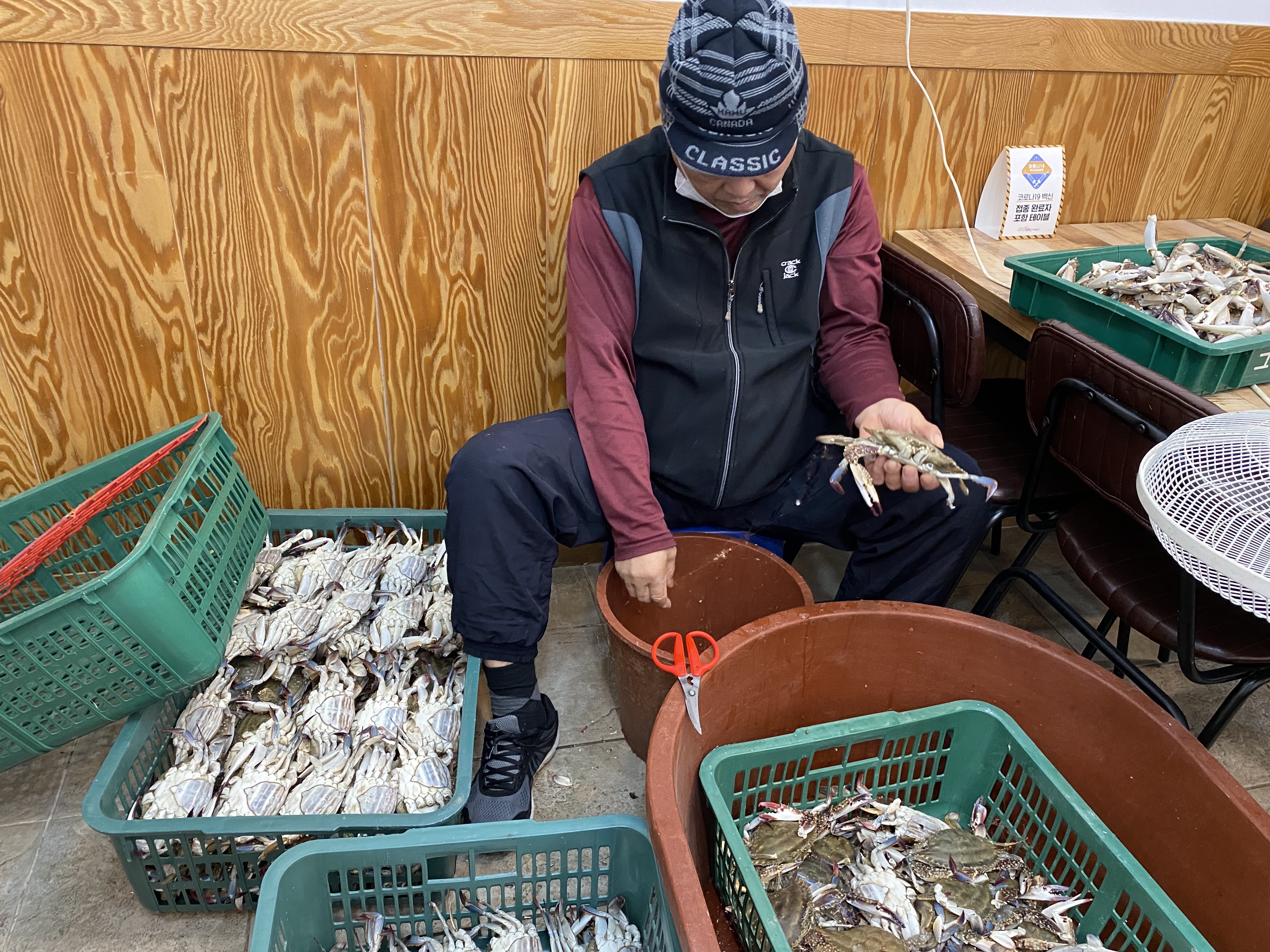 그러면 꽃게를 직접 손질을 할 텐데, 손질하는 일이 힘들잖아요.