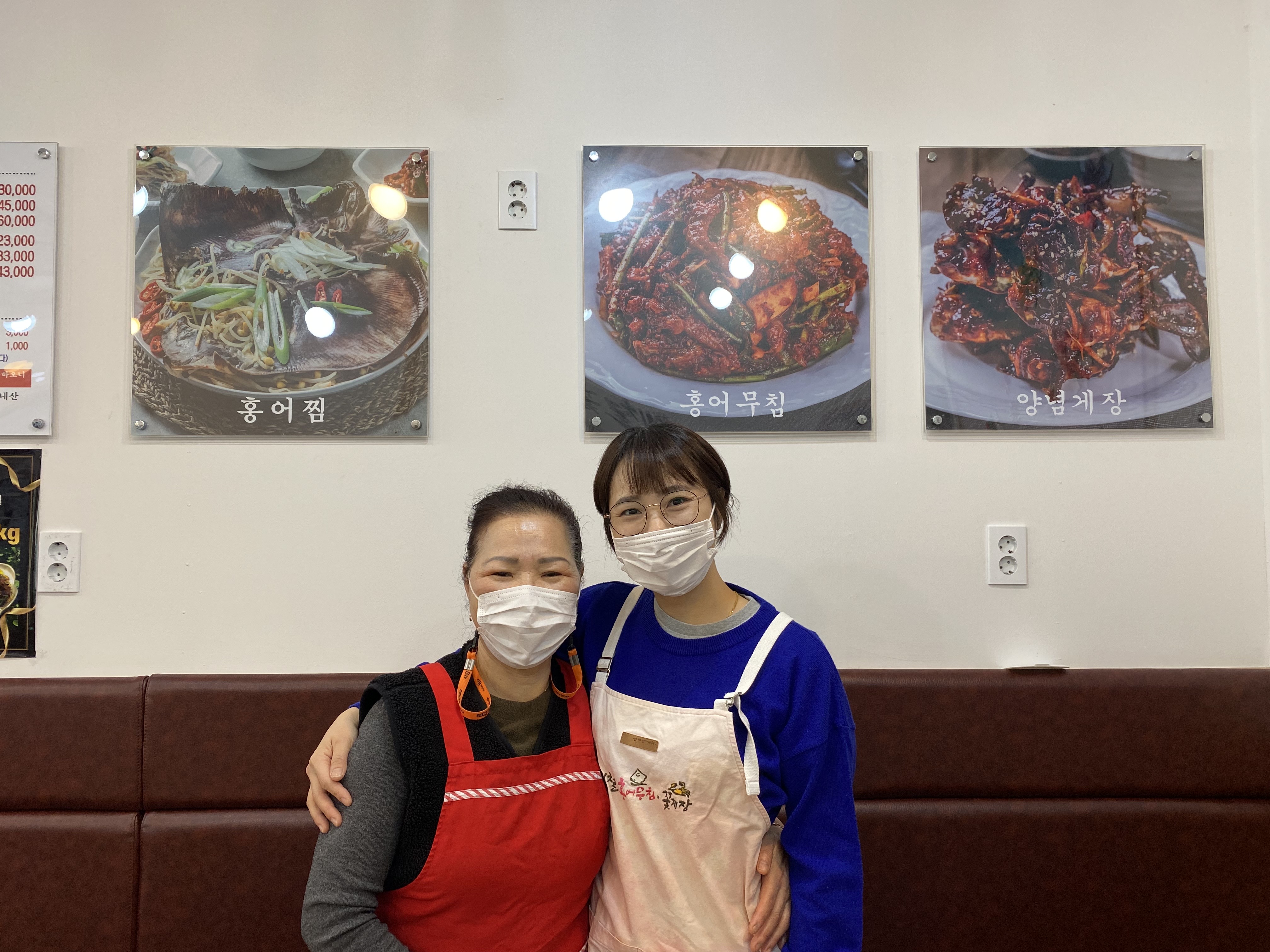 지금은 돌아가셨지만, 원래는 저희 외할머니께서 홍어 생선가게를 하셨어요. 전라도 부안에서 하셨는데 그쪽이 꽃게도 나고 홍어도 나요. 그래서 어머님이 어렸을 때부터 커터칼로 홍어 껍데기 까던 시절부터 조금씩 배우셨어요.