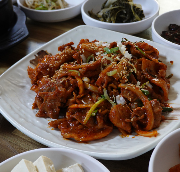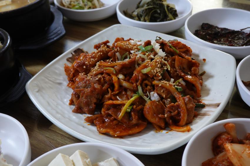 계절에 큰 영향은 받지 않았는데 아무래도 한두 가지는 매일 바뀌는 편이에요. 한두 가지는요. 그 전날에 똑같은 반찬이 올라올 수도 있는데 거의 한두 가지는 새로운 게 올라와요. 오래 하다 보니까 단골이 많잖아요. 전체적인 거를 다 바꾸기에는 어렵고요. 주메뉴 포인트로 몇 가지는 아예 안 바뀌어요. 그렇게 하고 나물 종류가 한두 가지씩 조금 바뀌어서 나와요.