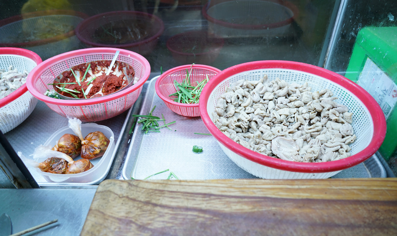 한 집에서 써요. 전에 장사했던 사람이 그만두고 순대를 만들어서 대줘요. 내가 20년을 장사하면서 순대를 안 바꾸는 이유가 그 집 순대가 그래도 최고의 맛은 안 떨어져요. 여기 다 한 집에서 받아요. 재료상도 순대도 팔고 이러는데 맛 차이가 많이 나요. 그래서 어지간하면은 재료상에서 안 갖다 쓰지. 근데 순대가 딸리는 날이 있어요. 순대만 나가는 날이. 그러면 할 수 없이 갖다 쓸 때도 있어요. 그러면은 손님들이 먼저 알아. 순대가 후추 냄새가 많이 나고 맛이 없다고. 손님한테 미안하다고 양해를 구해야지만 사실 순대가 모자라 가지고 어쩔 수 없이 쓰는 거라.