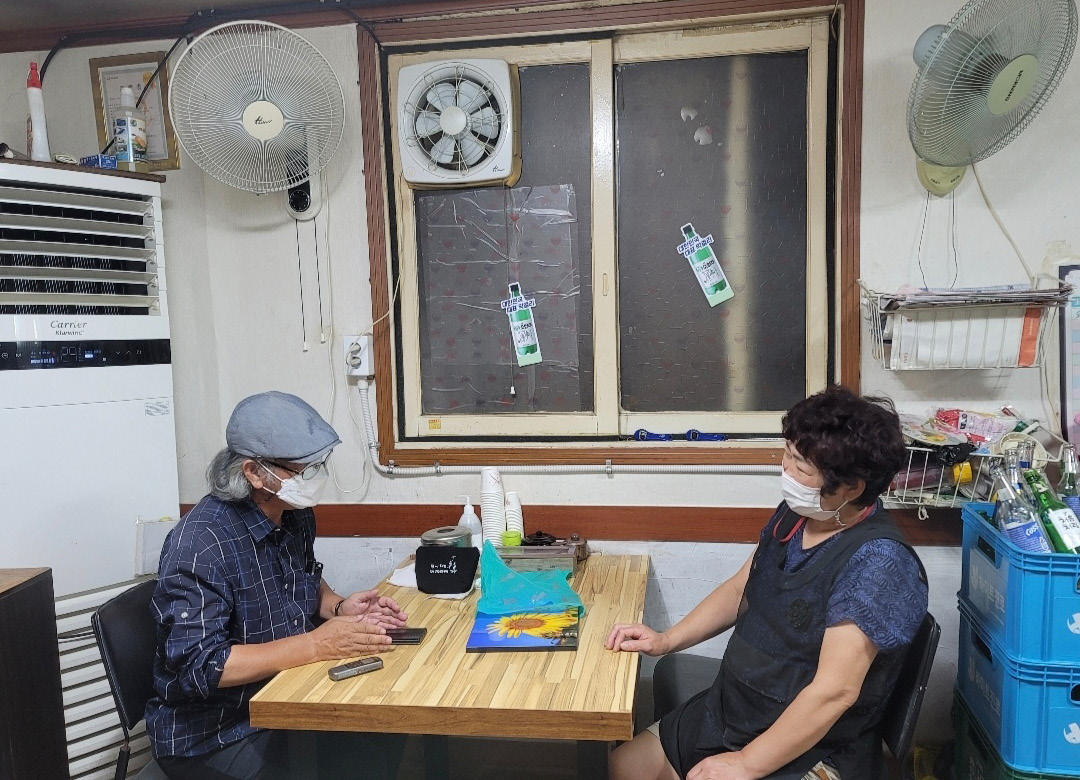 나이가 좀 먹은 사람들은 오면 서비스 좀 주라 하고 그런 사람도 있고, 요새 젊은 사람들은 막 주면 주는 대로 그냥 먹어요. 젊은 친구들은. 나이 먹은 사람들은 술 먹는 사람들은 우리가 좀 잘라주지. 먹으라고. 젊은 사람도 그게 정이었단 말이에요. 전통시장에. 그래서 사람들이 찾고 이렇게들 하고 있죠. 원리 원칙대로 하다 보니까 정이 없어. 그냥 저희 아들하고도 얘기를 하면 딱딱 끊어지다 보니까 정이 없어요. 옛날처럼 막 하고 또 이제 사장님하고도 농담도 주고받고 그러면서 이제 어느 때는 손님 없고 하면 약주 좀 하시면 같이 술 한잔하자 이렇게 하고 그랬었는데 지금은 없는 것 같아요. 없고요. 나는 손님들 앞에서 술을 안 먹지. 아는 애들 친구들이 오고 이러면 어쩌다가 친목계 있고 그러면은 한두 잔은 마셔도 많이는 안 마시지. 그래서 요새는 거의 끊다시피. 왜 그러냐면은 당도 있고 이러니까 거의 끊었어요. 요새는 술도 많이 먹는 사람도 없고 그러니까 나도 좋지. 요즘에는 소독하기도 귀찮고 의자 같은 데 다 소독하고 닦고 뿌리고 닦고 그 것도 귀찮아요. 아침에 내가 어떤 때는 6시 좀 넘어서 나와요. 그러면 소독하는데 시간이 좀 걸리거든요. 그것도 또 닦아. 수분도 딱 씻어야 되는 거지. 의자마다 다 다니면서 다 뿌리고 닦고 해야 돼. 화장실부터 전부 다 변기통도. 그러니까 매일 내가 할 일이 많은 거야.