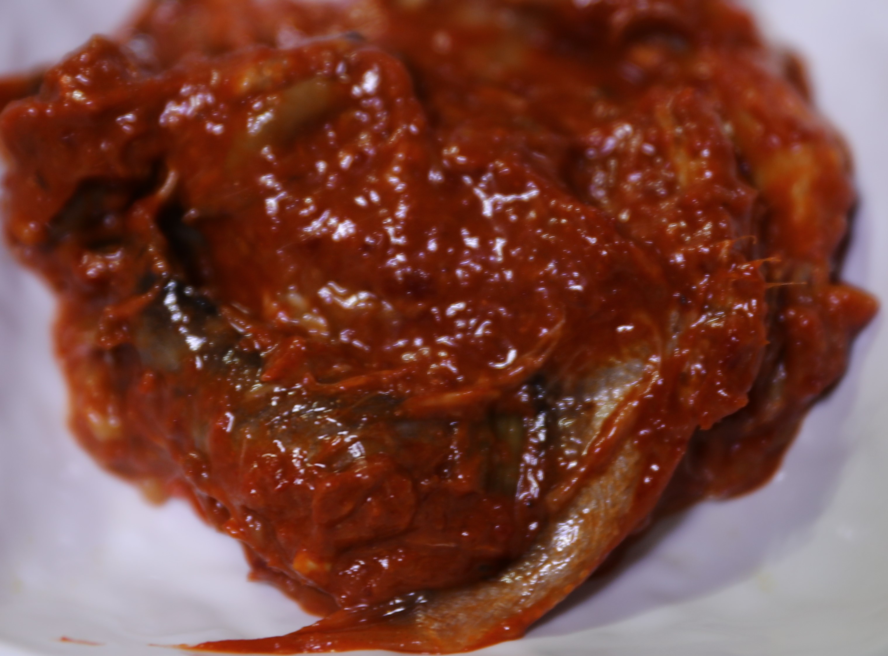 구술자: 그렇죠. 매운 고추도 많이 넣고 물엿 넣고 잡채에다가 찹쌀풀 써서 좀 넣고 그렇게 해서 한 달 동안 젓갈에다가 곰을 삭히지. 찐득찐득하는 것이 찹쌀풀을 써서 넣어놨기 때문이에요. 안 하면 물처럼 맑잖아요. 그것 때문에 찐들그리 좀 짜지를 덜하지.