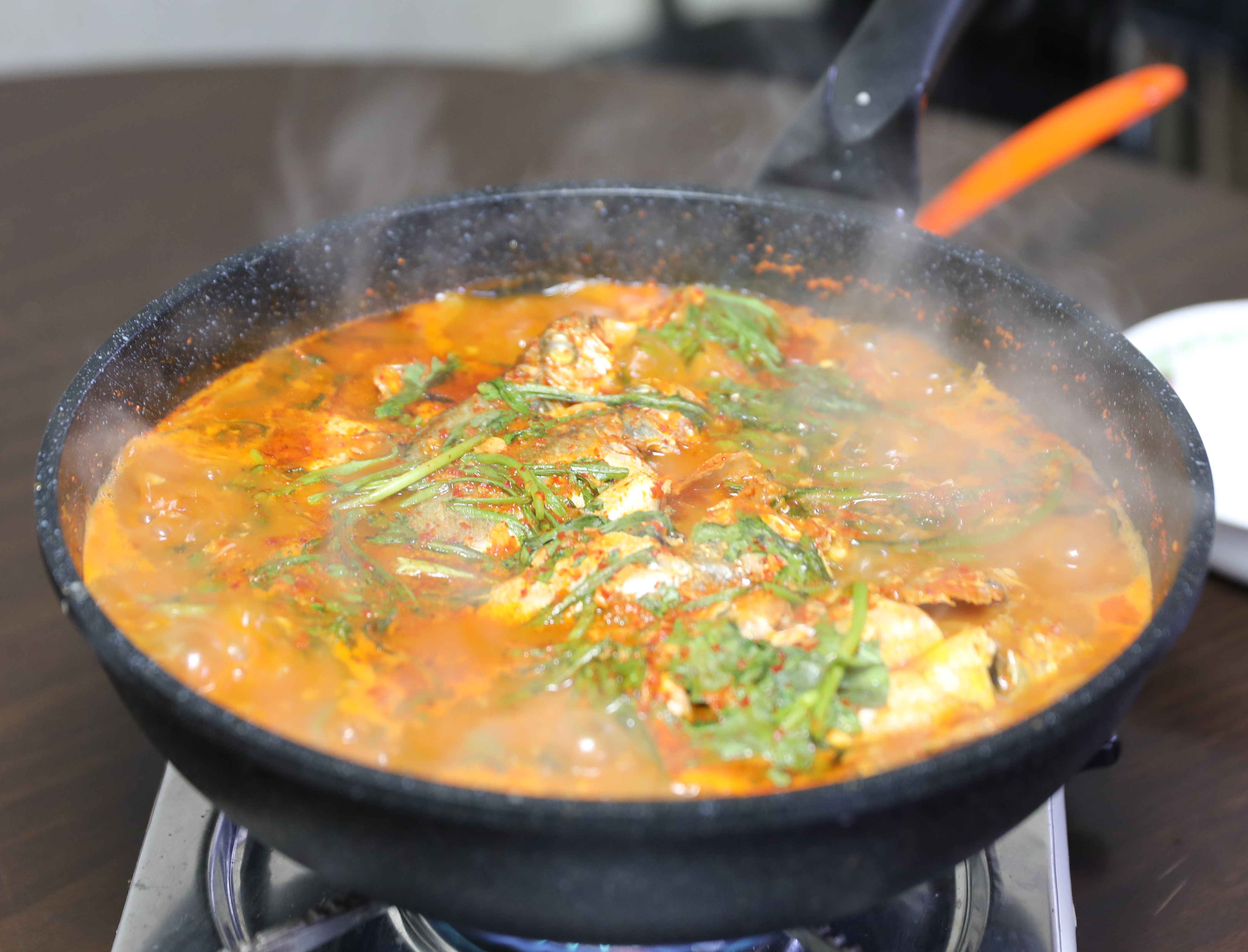 구술자: 무랑 쑥갓 들어가고. 그거죠. 조기가 좋으면 조기 자체에서 단맛이 나요.