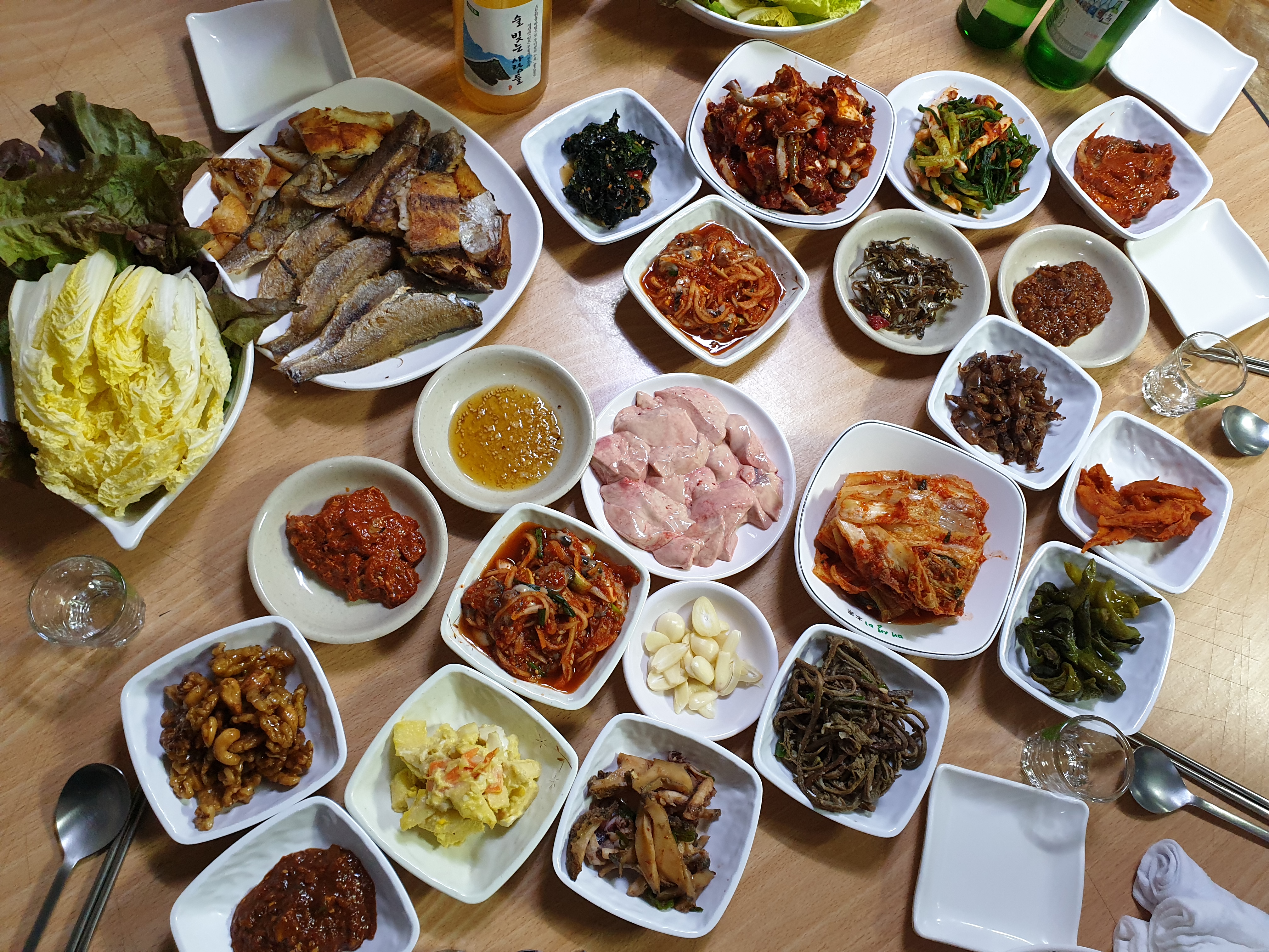 구술자: 김치하고 젓갈만 기본으로 나오고는 음식이 매일 달라요. 그리고 또 예약하면 또 다르고요.