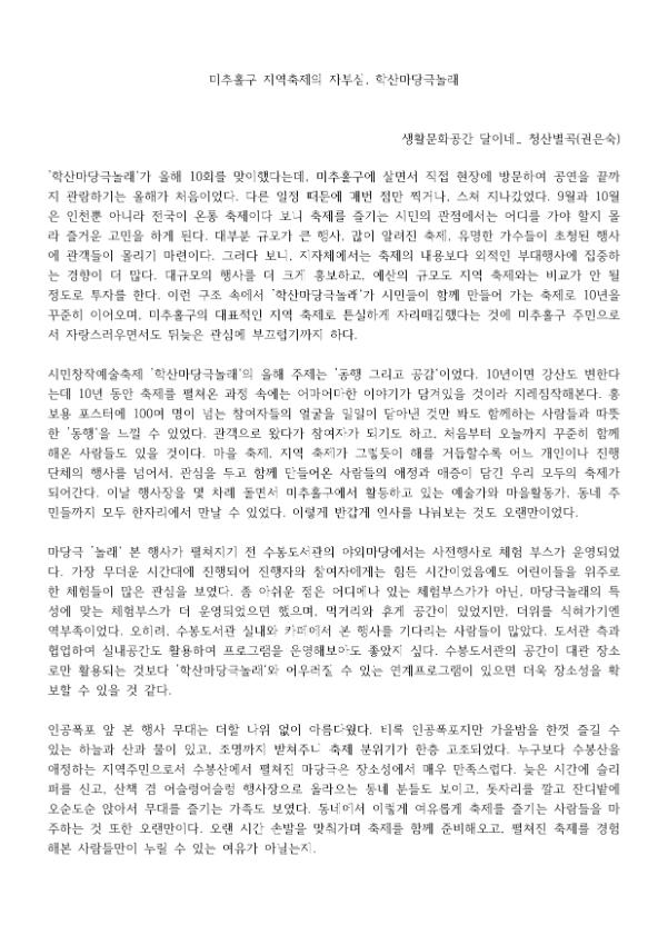 | 검색어 | 마당예술동아리,시민창작예술,학산마당극놀래,리뷰 |