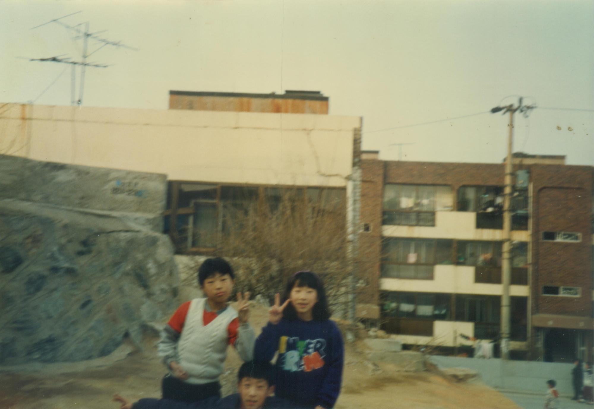 90년대 초 학익초 아이들은 동네에서 주로 골목에서 놀거나 여기 빌라 뒤편에서 주로 놀았다고 합니다. 평소에 특별한 행사 없이 찍은 사진이 신기하네요.