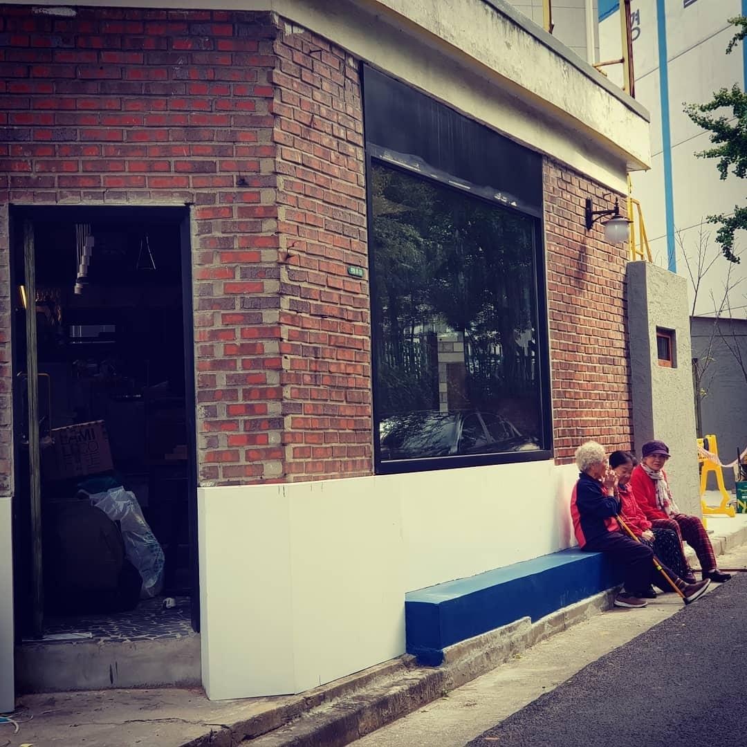 사진으로 보이는 빨간 벽돌 집이 바로 카페(간판이 없는)입니다. 골목 삼거리 중앙에 위치해 있습니다. 이 카페가 이전에는 집이었는데, 집 주인이 내부를 개조해서 카페로 만들었다고 합니다. 그런데 한 가지 다른 카페와 다른 점은, 동네 어르신들이 다니실 때 앉아서 쉬실 수 있게 파란 돌담을 만들었다는 것입니다. 사진처럼요. 저곳은 커피를 사 마셔야지만이 앉을 수 있는 곳이 아니라, 아무나, 누구나, 앉아서 얘기할 수 있고, 쉬었다 갈 수도 있게 만들어진 작은 공간이라고 합니다. 그래서 실제로, 할머니 할아버지도, 아기 엄마도, 아이들도, 학생도 한 번 쯤 앉았다 갑니다. 특히나 여름에는 저 곳에 앉아서 부채질하고 가실 때도 많습니다. 너무나 정감있지 않나요?? 이 모습이 인천이 주는 옛날 아날로그적인 감성과 공감이 아닐까 생각이 들어서 여러장의 사진과 함께 전합니다.