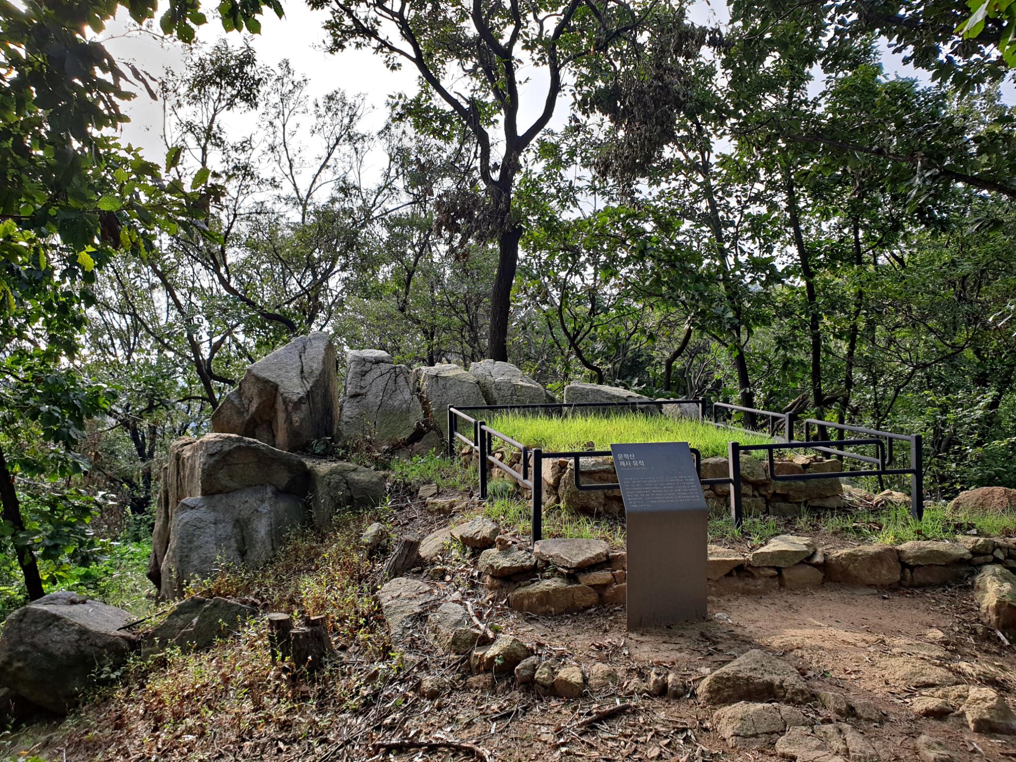 문학산 정상에서 서문 쪽 나무계단으로 내려가면 사모지고개로 내려가는 등산로가 나오고 여기서 300m정도 더 내려간 위치에 있다.