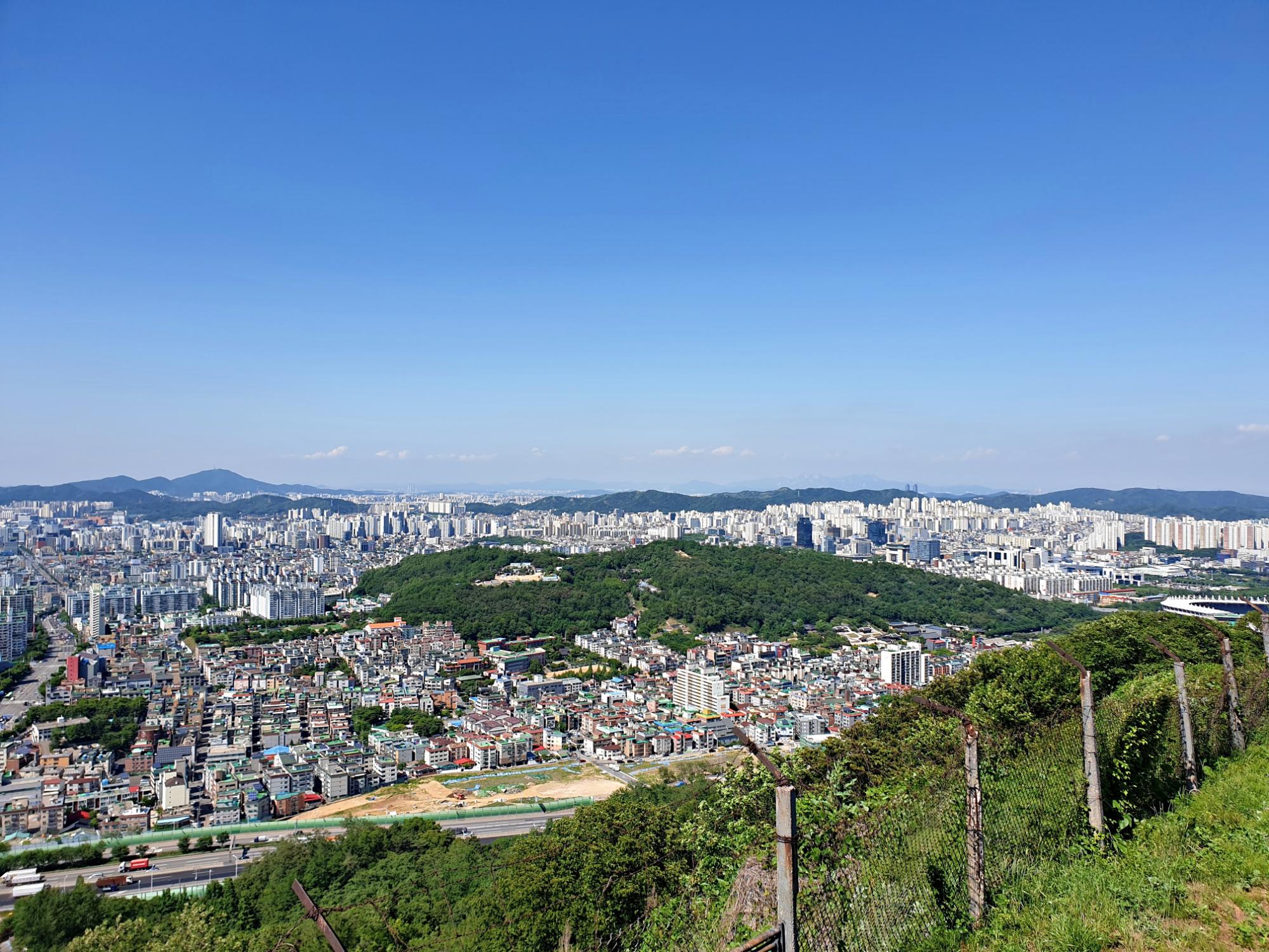 문학산 정상에서 미추홀구 방향(북쪽)의 문학동 일대를 촬영한 사진이다.