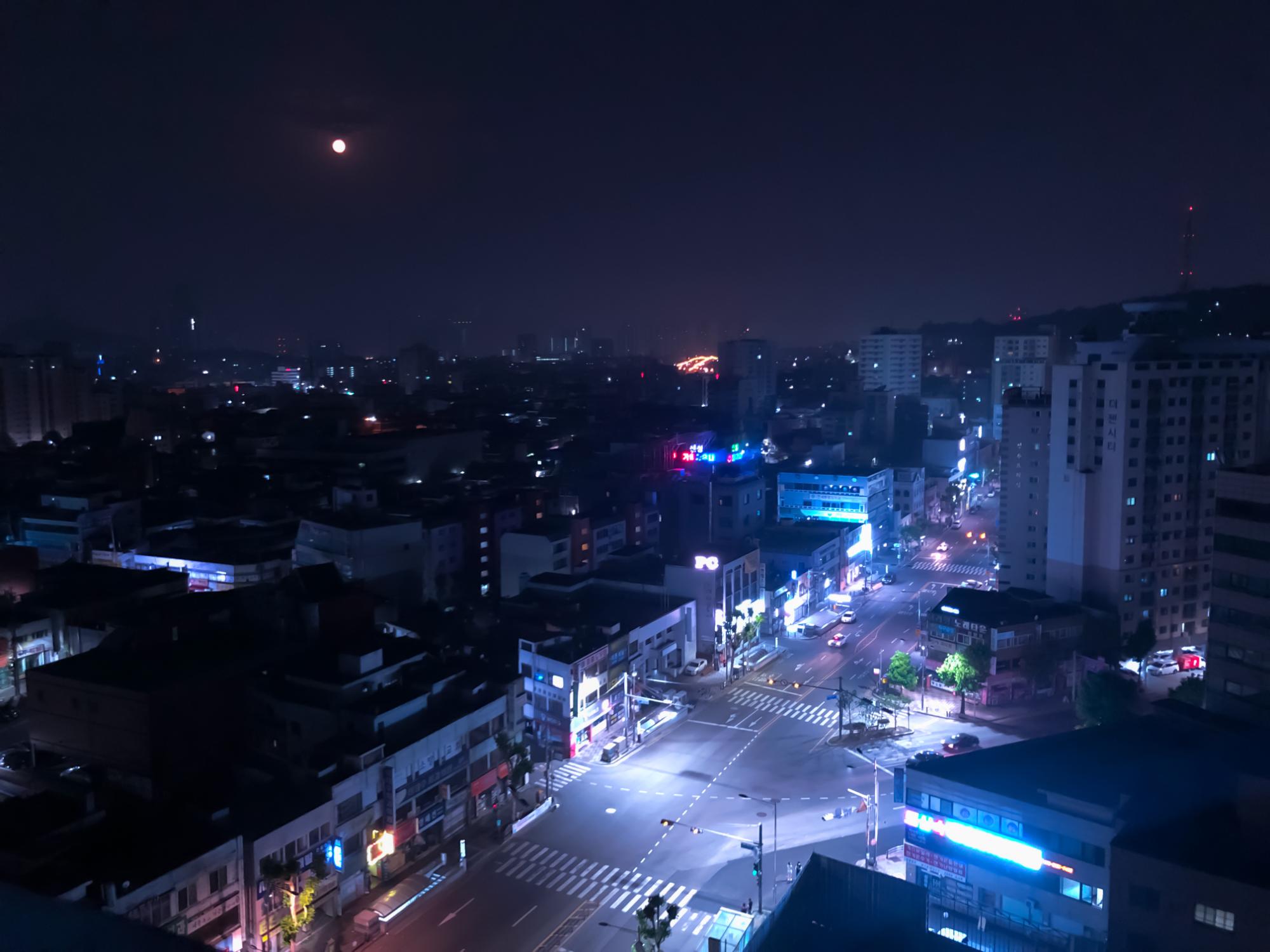 새벽 4시, 달을 보기 위해 이른 시간에 일어나 바라 본 주안사거리의 야경입니다. 도로마다 줄지어 순서를 기다리던 수많은 자동차들이 사라진 시간에 보았던 사거리는 적막하면서도 평화로웠습니다.