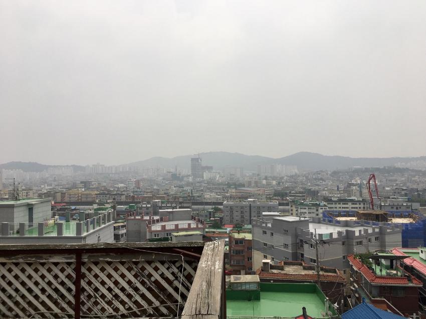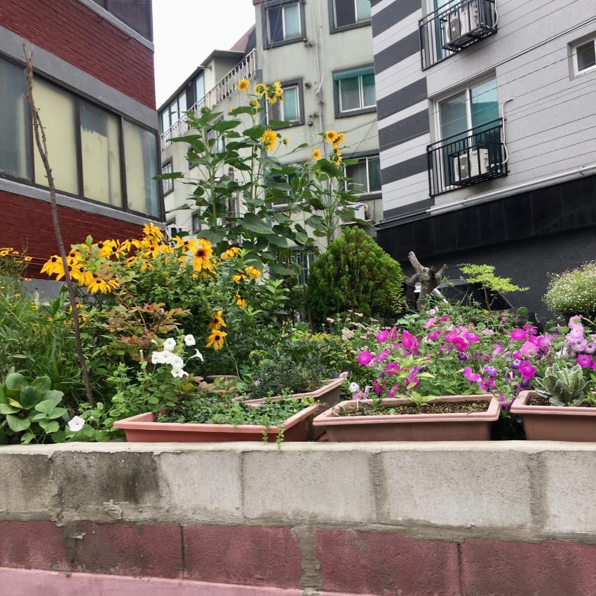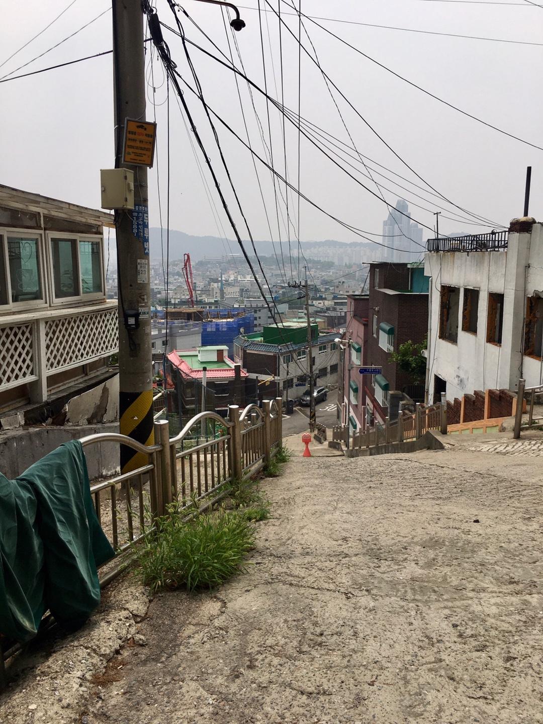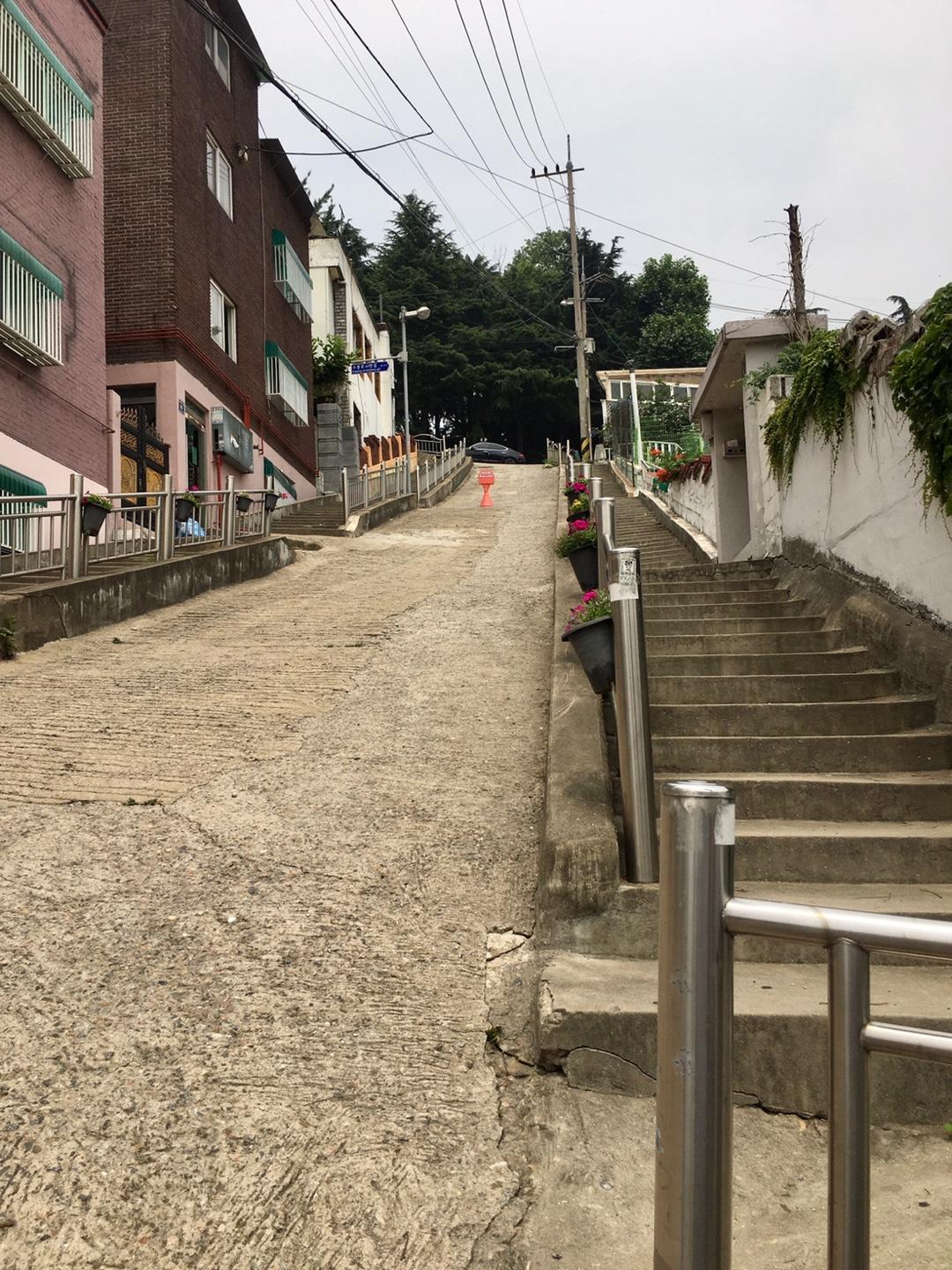 수봉공원 가는길 옛 정서가 느껴지는 언덕길과 예쁜 카페를 사진에 담았습니다. 언덕과 카페에서 내려다본 경치가 요즘 높은 빌딩들과는 다르게 느껴집니다. 청운대 근처의 길 주변에 나무와 풀들이 자연 친화적이고 좋습니다. 유유기지 프로그램 참여를 위해 갔었던 공방과 옆의 꽃들도 예쁘고 친근합니다.