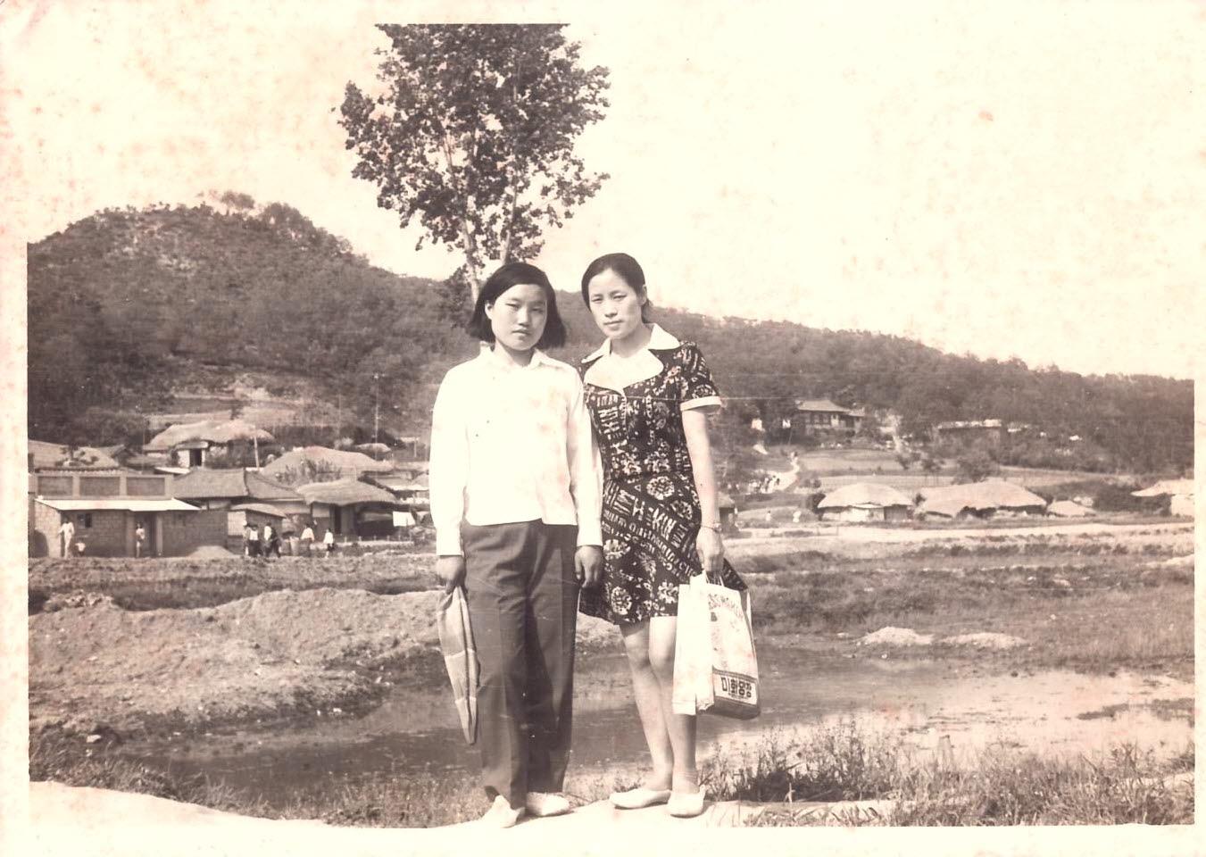 회사에서 나들이로 문학산에 나들이 오셨을 때 향교와 승학산 배경 향교앞의 길. 지금의 길과는 많은 차이가 있다.
