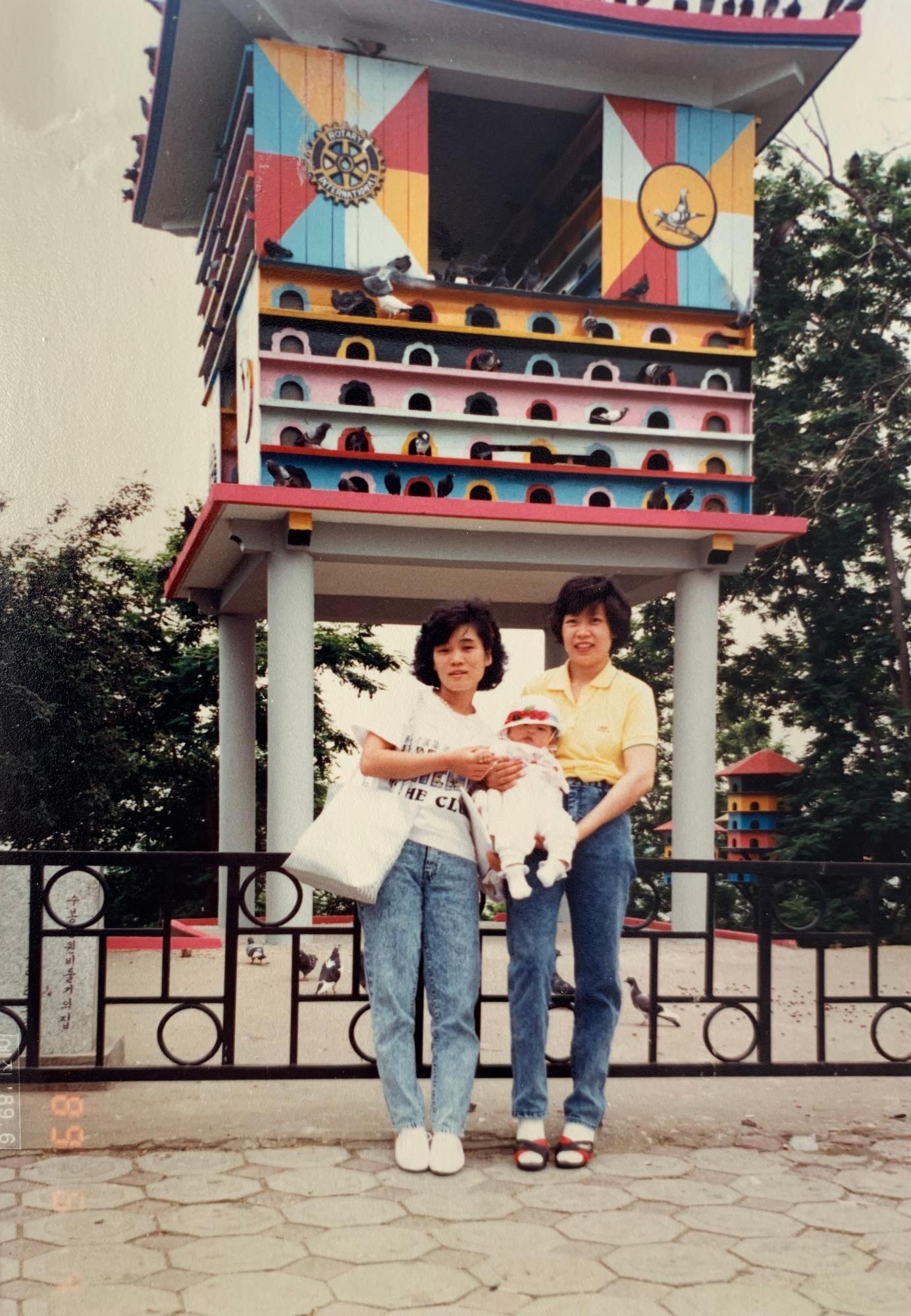 제가 태어난지 6개월 정도 되었을 때, 엄마, 둘째 외삼촌, 둘째 외숙모께서 저를 데리고 수봉공원 가셔서 찍은 사진으로 추정됩니다. 그 당시 저는 너무 어려 저 때의 기억이 안 나지만, 이번 '미추홀의 길' 공모 덕분에 엄마와 둘째 외삼촌, 외숙모의 젊은 시절의 모습을 볼 수 있어서 좋았습니다. 지금의 수봉공원에는 비둘기의 집이 없지만, 저 당시에 비둘기의 집이 있는 점도 신기합니다. 특별한 사진은 아니지만, '미추홀구'에서 함께 한 옛 추억을 구민 분들과 공유하고자 합니다.