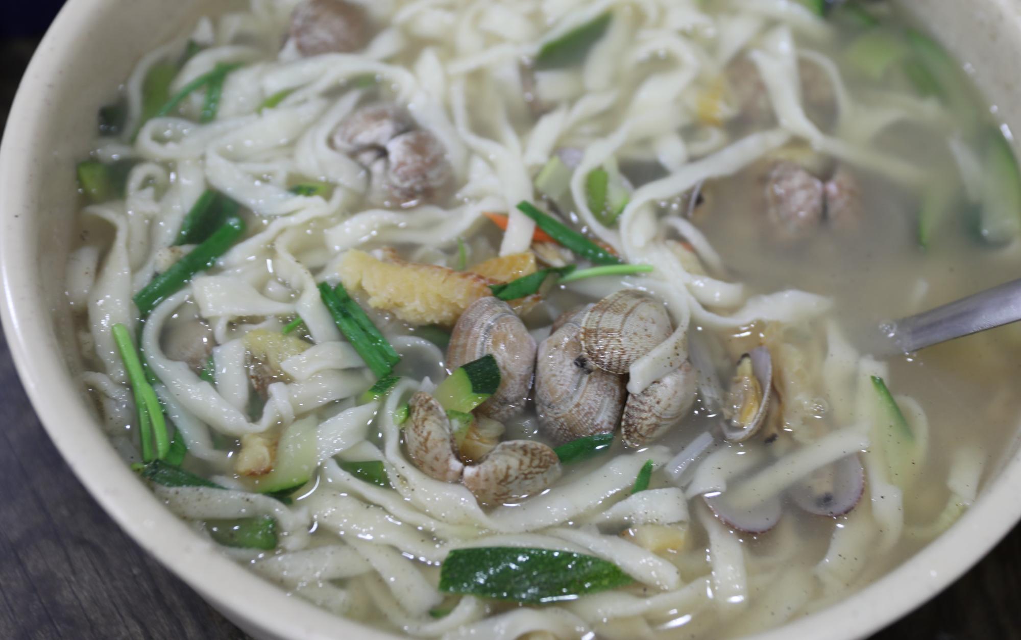 | 변경후 내용 | 호야네바지락손칼국수에서 파는 칼국수다. 옛날엔 직접 손반죽을 해서 면을 만들었지만 지금은 인건비가 비싸져서 반죽을 받아서 쓰는 중이다. 칼국수에는 황태, 바지락, 호박, 파, 기본고명이 들어간다. 손님들께서 국물이 약간 싱겁고 깊은 맛이 없다는 말을 하셔서 황태를 넣기 시작했 |