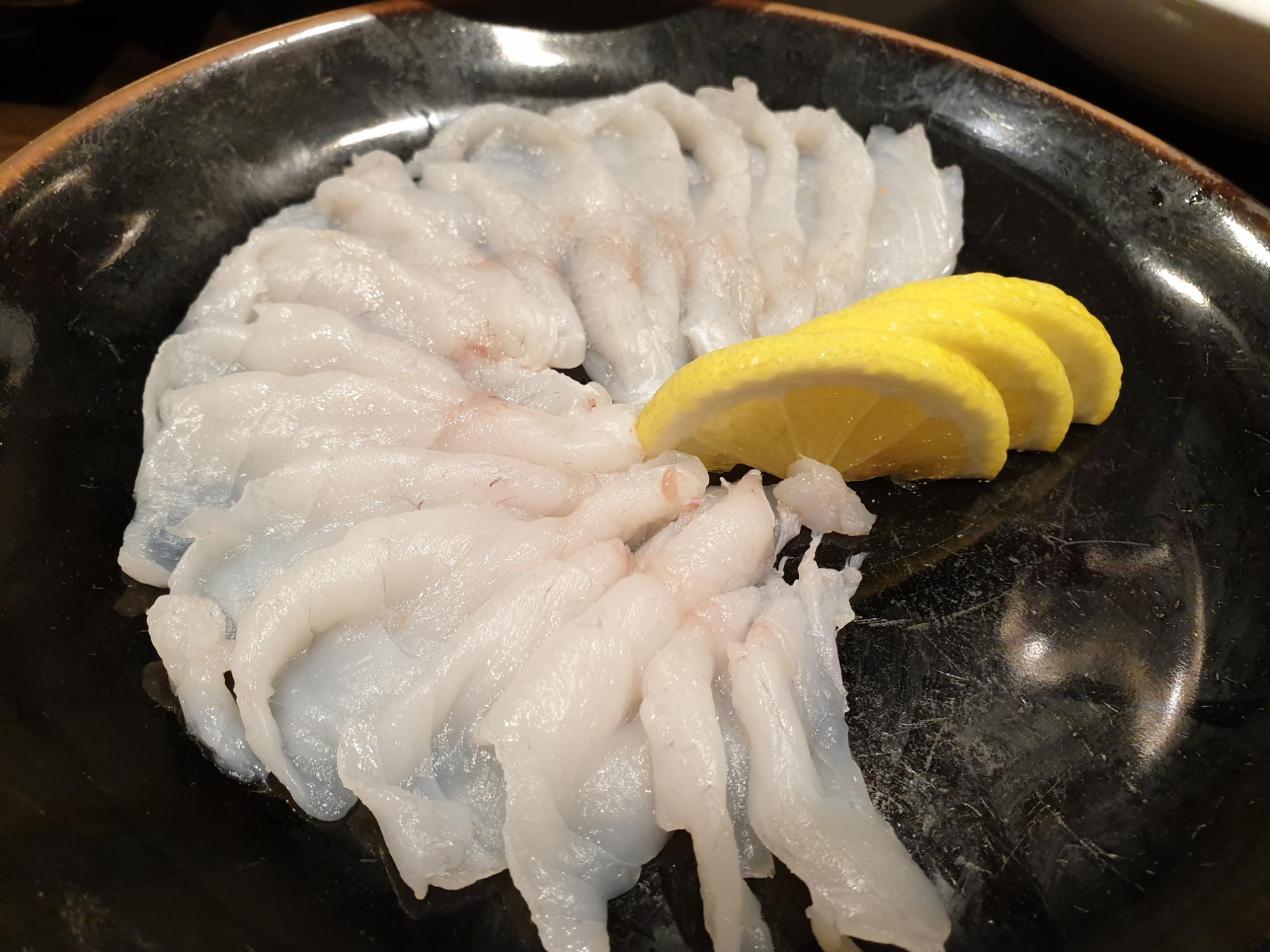 삼원일식 복어회 사진이다. 선어회 이외에도 다른 종류의 회가 있으며, 복어회도 전문적으로 손질을 잘 한다. 사장님은 가게운영 준비과정에서 한식, 일식, 제빵 자격증을 취득하였다.