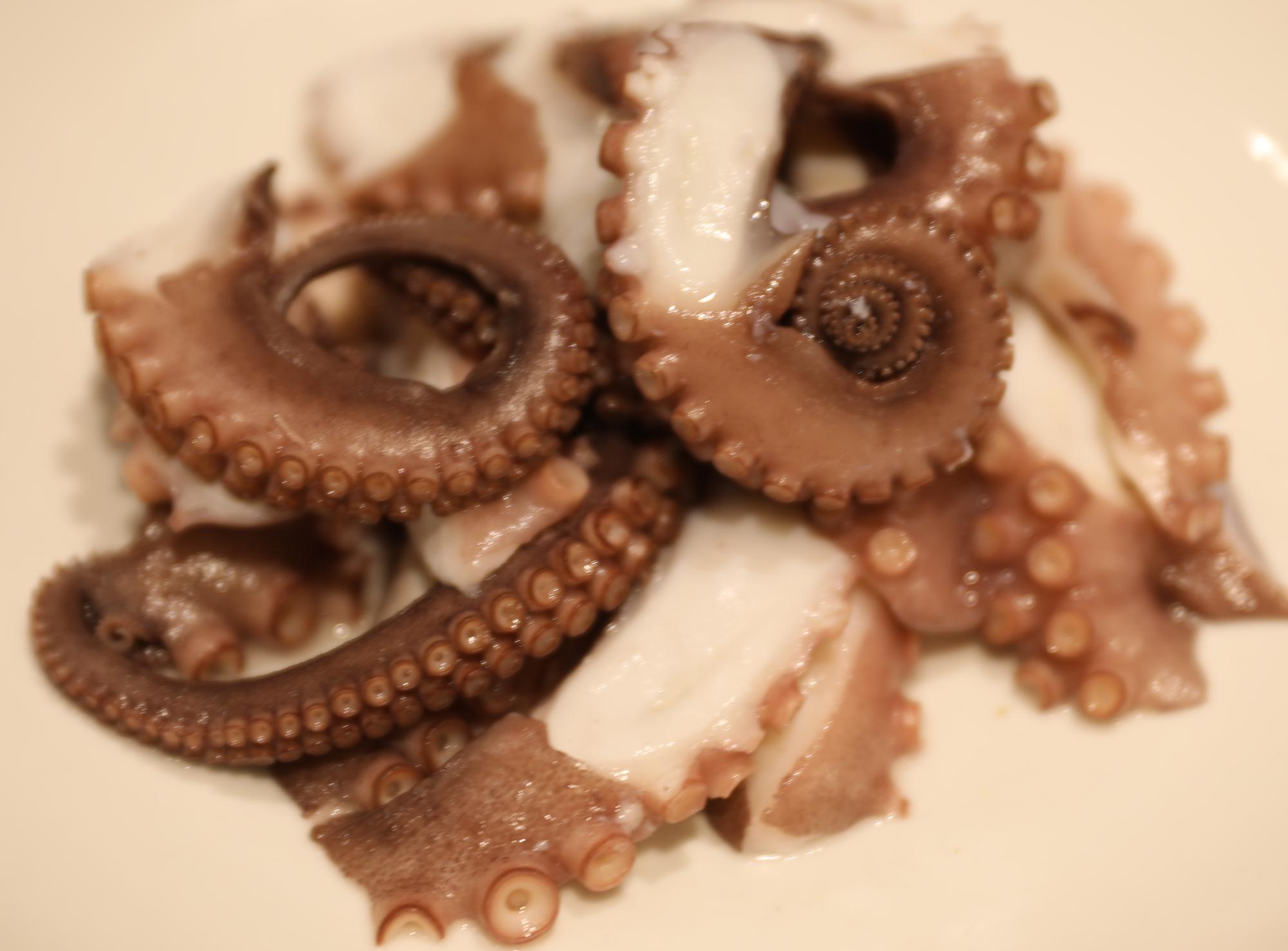 삼원일식 문어사진이다. 신선한 문어를 삶아 먹기좋은 크기로 썰어서 손님들에게 드린다. 쫄깃졸깃하고 탱탱한 문어의 식감을 느낄 수 있다.